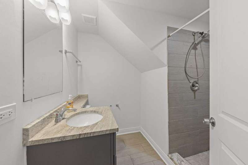 Beautifully updated brick split-level offering 3 bedrooms and 2 full baths! Step inside to find gleaming hardwood floors throughout the main and upper levels, complemented by a custom hardwood staircase. The stunning eat-in kitchen features modern gray shaker cabinetry, granite countertops, stainless steel appliances including a 5-burner range, refrigerator, dishwasher, and built-in microwave. Both bathrooms have been completely renovated with eye-catching tilework, a whirlpool tub, and a separate walk-in shower. The finished lower level provides additional living space with a spacious family room, full bath, and laundry area, perfect for relaxing or entertaining. Outside, enjoy a huge fenced backyard ideal for gatherings or play, along with a concrete side drive that leads to the attached garage. This home combines modern style, quality finishes, and a functional layout, all ready for its next owner to move right in!