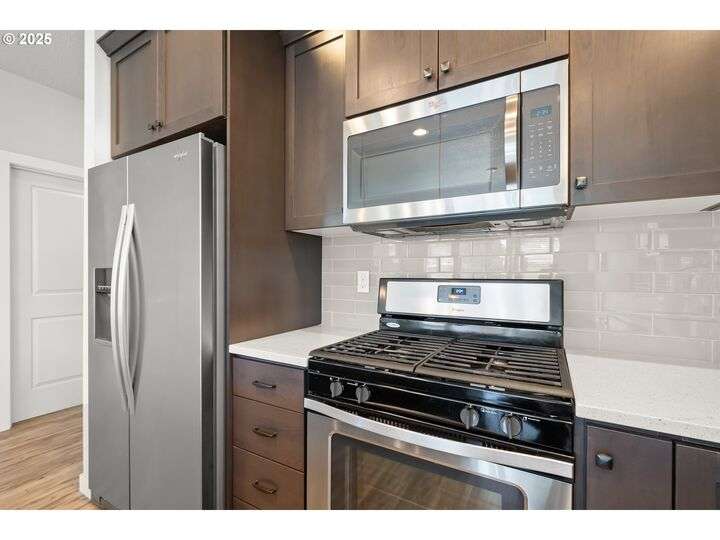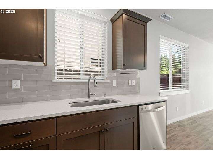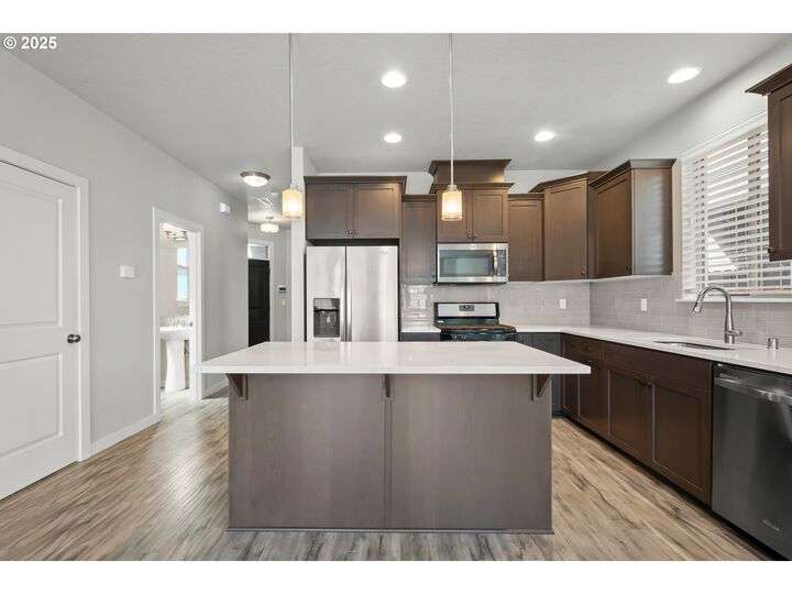 Motivated Seller! Super Cute home that is Move in Ready!!! Backs to Neighborhood Park! Step into comfort and style with this stunning 2100 SqFt 3-bedroom home plus dedicated office, designed for modern living! Soaring 9-foot ceilings on the main floor create an airy feel, complemented by sleek laminate flooring throughout. The spacious island kitchen features Quartz countertops, a free-standing refrigerator, gas range, full-height tile backsplash, and flows seamlessly into the spacious great room with a cozy gas fireplace and custom built-ins. The vaulted primary suite is a true retreat with abundant natural light, double sinks, a luxurious soaking tub, tile shower, and a walk-in closet. Enjoy added touches like tile flooring and countertops in the bathrooms, a tankless gas water heater, and an outdoor sprinkler system. The double garage includes an opener for convenience!