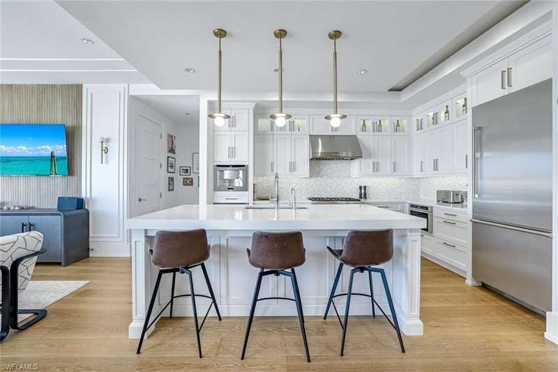 This exceptional residence is perfectly located in the heart of Old Naples, just steps from fine dining, boutique shops, and the historic Naples Hotel on 3rd Street. From this coveted address, you ll enjoy world-class restaurants, weekend farmer s markets, and the coastal lifestyle amenities Naples is known for while being only three blocks from the pristine beach. Set within the highly sought-after 382 building, this boutique property offers the exclusivity of only four residences with secure, private entry. Privacy and sophistication define the experience here, making it an ideal choice for a full-time luxury home or a refined pied- -terre in one of Naples most desirable neighborhoods. Apartment 301, located on the third floor, has been recently remodeled and is being offered fully furnished with brand-new, designer-selected pieces. Flooded with natural light through impact-resistant windows and automated pocket walls, the residence opens to sweeping northwest views. From the comf