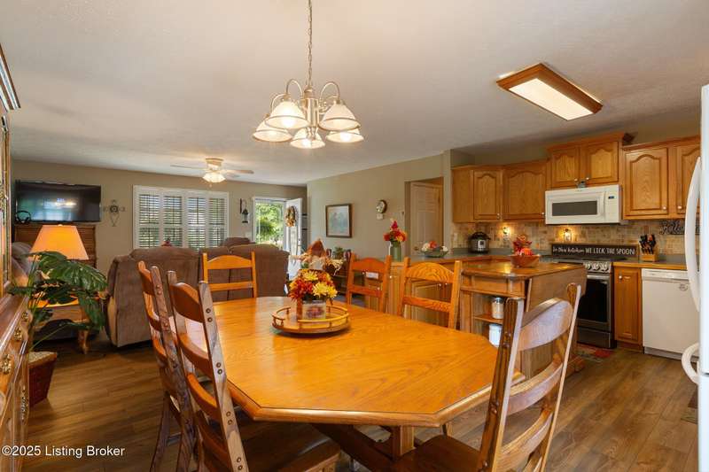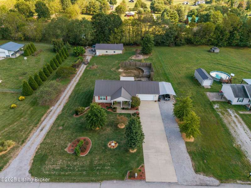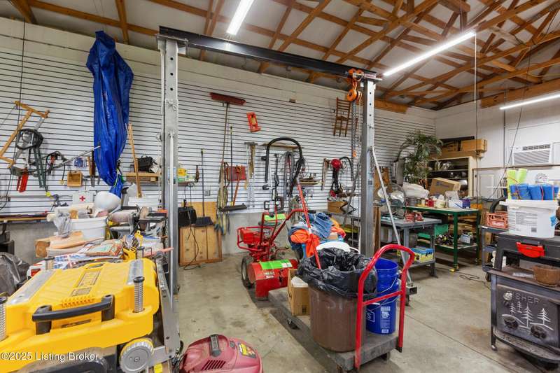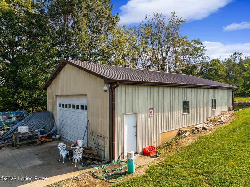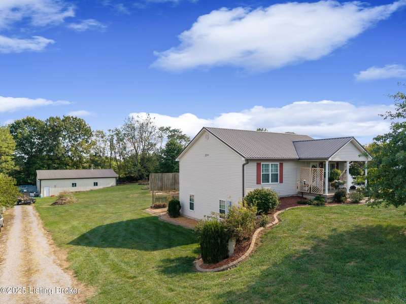 Come see this beautiful one-acre walkout ranch home with an unbelievable 30' x 50' workshop. This home offers replacement windows throughout, a 50-year metal roof, and high-end LVP floors on the main level. There is over 2400 sf of finished space as well as three bedrooms and two-and-a-half baths. As you pull up to the home one of the first things you notice is the double width concrete driveway that leads to the attached two-car garage with an additional carport off the side for another two cars. The covered front porch is perfect for enjoying the sunset as it faces the west. As you enter the home, you will find the open concept living room/kitchen/dining area that offers a warm and inviting space for hosting friends and family. The kitchen offers a gas range as the house is on propane, and there is ample cabinet and counter space. The high-end LVP floors run throughout every room upstairs providing a great environment if you have pets and kids. The primary bedroom and laundry room are both on the main level so you have complete first floor living. There is a second bedroom and half-bath as well as a covered deck off of the dining area. Down below you find the finished walkout basement that is the footprint of the home. You will find a large recreation room with a fireplace that would be perfect for a second living room with enough leftover space for an office, game room, or home gym. Additionally, there is a full bathroom, another bedroom, and a utility room that is being used as a fourth bedroom for guests. The one-acre property does not have an HOA, and it is set up to have a large above ground pool if you so desired. The garden is lush and you can see that plants flourish in this soil. The detached pole barn is a mechanic or woodworker's dream. It has concrete floors, concrete walls at points, its own electrical panel, and comes with an attached 1-ton car lift that will remain. One of the walls has a modular storage system with lots of movable hooks and organizers. There are other items such as the zero-turn and the gantry crane and crank that the owner would be willing to sell as well on the side. There is an additional large shed/garage behind the pole barn that could potentially be sold with the property as well. This house is special and offers so much for the right Buyer. Schedule your private showing today.
