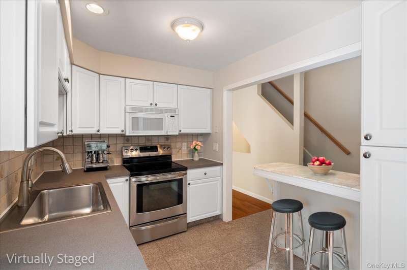 Early A/O As Of 10/3... RARE END UNIT Triplex Townhome Located In Sought After 14 Unit Complex of West Glen. Conveniently Close To All Mount Kisco Has To Offer. As An End Unit This Sunlit Condo Features Extra Windows And Attached To Neighbor By One Wall Only. The Original Owners Have The Only Condo With Expanded Deck And Privacy Fence/Planters With Certificate Of Occupancy. There Is Approximately An Additional 144 Square Feet Finished Storage At Lower Level. The Living Room, Dining Room and 2 Bedrooms Have Hardwood Flooring. The Entry, Powder Room And Kitchen Have Granite Flooring. The Kitchen Has Been Opened To Feature A Breakfast Bar and All Stainless Appliances Are Approximately 3 Years Old. The Water Heater Is Approximately 1 Year Old And A/C Condenser Has Been Expanded For More Air Flow 4 Years Ago. You'll Also Find A Built-In Safe, Upgraded Panel Box For Use With A Portable Generator (Not Included), Ceiling Fan With Remote, TV In Second Bedroom, Extra Closet Space On Bedroom