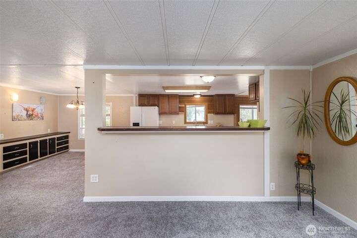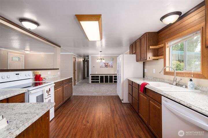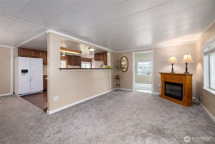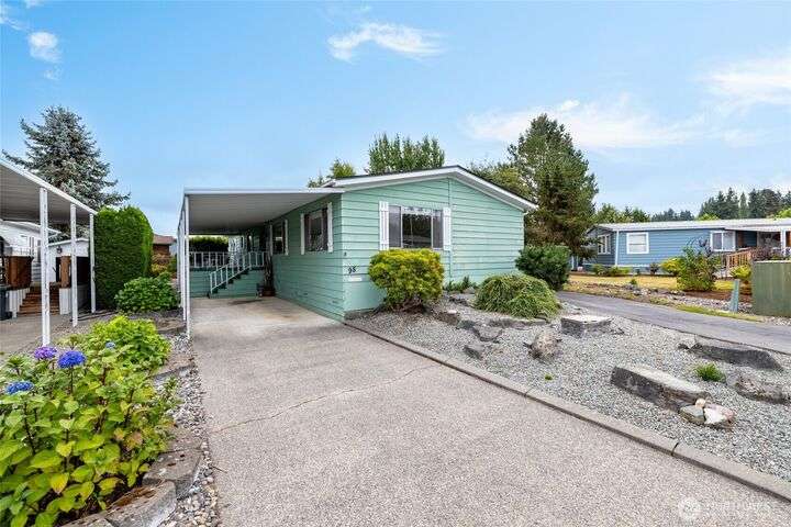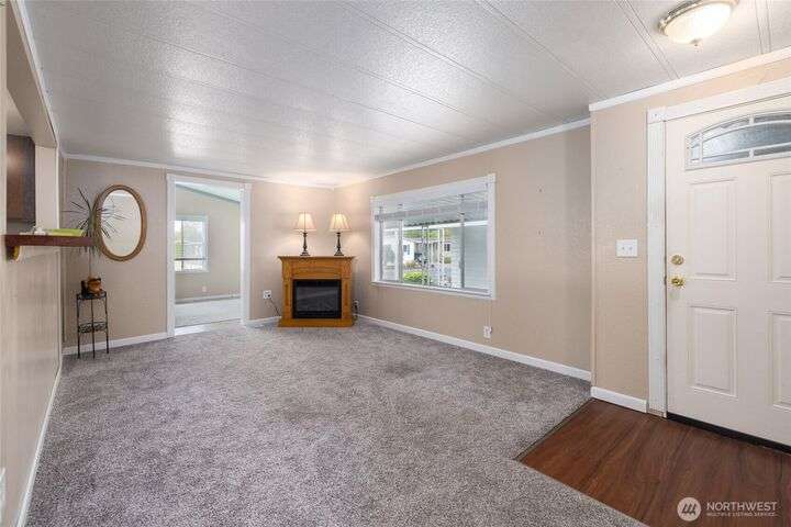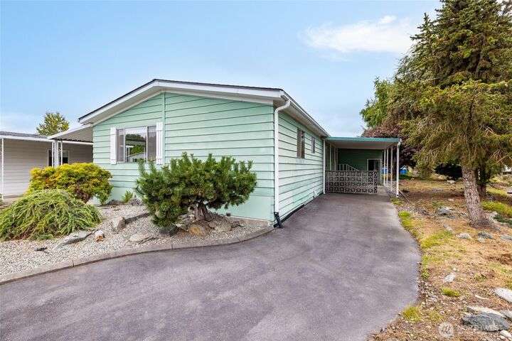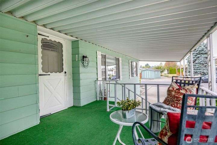 Wave to your neighbors from your spacious covered porch in the quiet and secure 55+ community of Park Village! This 3-bed, 2 full bath floorplan offers comfortable living options with a large living room and separate family room. You'll find built-in storage in the dining space, and a large updated eat-in kitchen with lots of countertop and a huge pantry closet. The bath off the primary features a separate tub and step-in shower for easy access. Flooring/carpet, kitchen, and main bath are all updated, and a heat pump ensures year-round comfort. Roof is newer within 5 years. An attached shed with power and workshop provides space for storage and hobby needs!