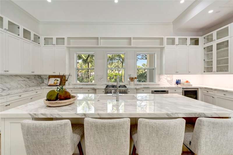 Effective yr built 2023. Home is situated on a 1/2 acre just 2 homes from the ocean! A spacious open layout, enlarged kitchen w/Calcutta Marble countertops & top of the line appliances. Primary bedroom overlooks the pool w/two large walk-in closets. New summer kitchen on large covered lanai. Entertainment rm just off the pool w/fireplace, newly installed sliders, A/C & covered lanai. Enjoy southern exposure poolside surrounded by lush tropical landscaping. Impact glass, Tankless gas water heater, A/C 2 car garage plus extra room for golf cart, well for sprinkler. Sizes approx./subj. to error.
