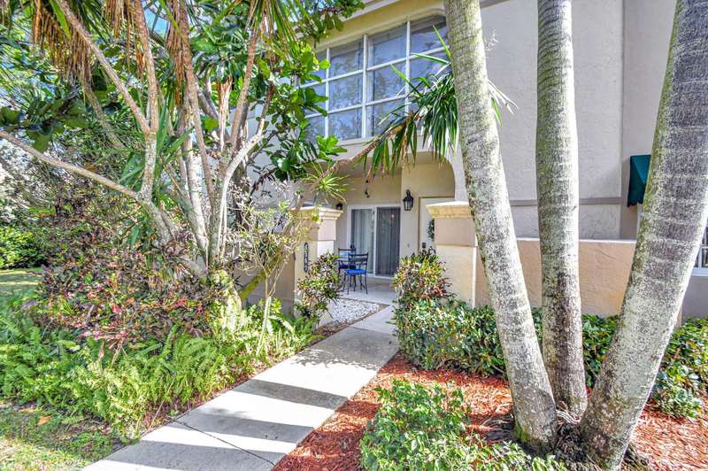 Experience luxury living in this fully renovated 2-bedroom, 2-bath first-floor condo in Plum at Boca Pointe. Every detail has been redone to perfection, creating a truly move-in-ready home. Beautiful wood floors flow throughout, and all windows and doors have been upgraded to impact glass. Brand new A/C !!! The courtyard entrance features an open patio and storage area, while the enclosed patio offers additional living space with peaceful garden views. The kitchen boasts quartz countertops, white cabinets, stainless steel appliances, and a French door fridge. Smooth ceilings, crown molding, updated bathrooms, custom walk-in closets, and a front-loading washer and dryer add to the appeal. Furniture is negotiable--don't miss this rare gem!