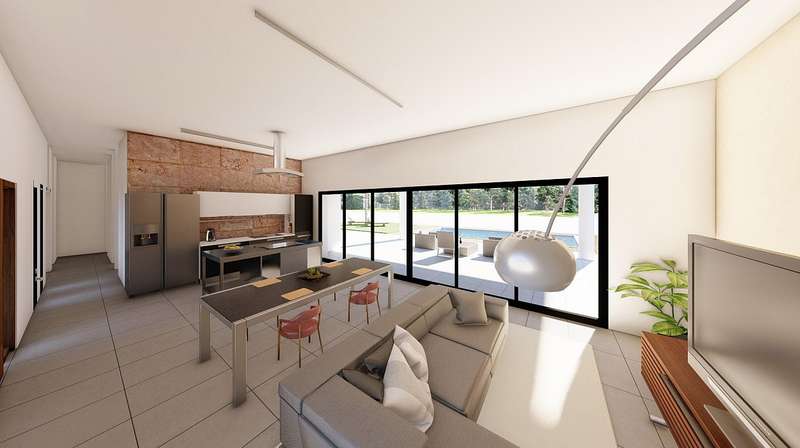 These single-level villas feature a bright open-plan living and dining area with a modern kitchen, three comfortable bedrooms, and two fully fitted bathrooms. The villas include a laundry room, two covered porches, and ducted pre-installation for air conditioning and heating. Additional features include an underground potable water tank with a pump, an electrical connection, and an elegant 8x4 m private pool. Every detail is designed for comfort, efficiency, and contemporary living.