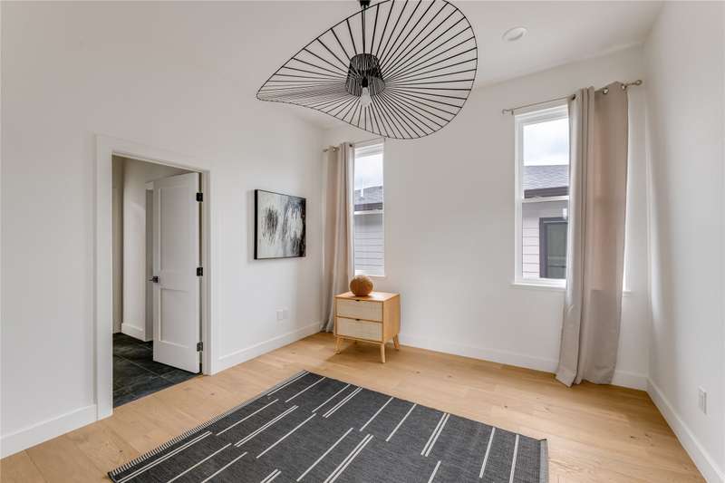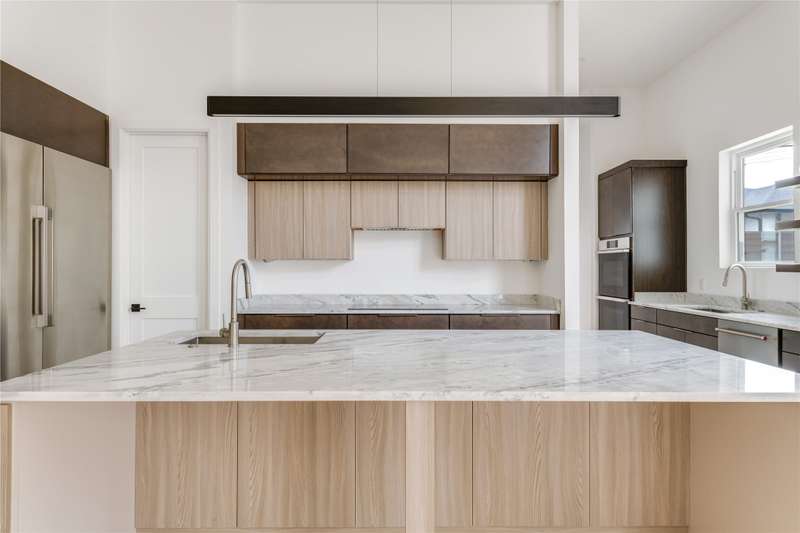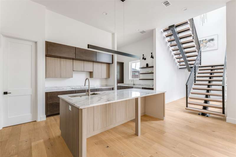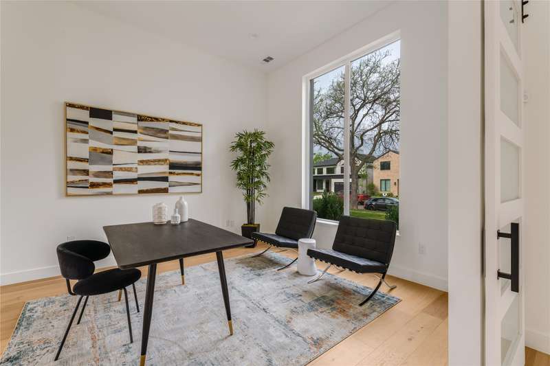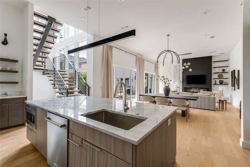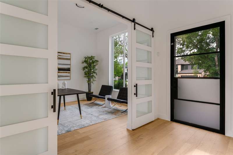 Contemporary Elegance in Glenridge Estates. Welcome to this light-filled, west-facing custom-built 2022 home in the sought-after Glenridge Estates neighborhood of Midway Hollowmove-in ready and designed for modern living, with three bedroom suites and a downstairs office. The open-concept main floor features 12' ceilings throughout, a seamless flow between the living, dining, and kitchen areas, highlighted by expansive sliding doors that open to a private patio and lush green yardperfect for entertaining or quiet relaxation. A striking stone wall anchors the living room, showcasing a sleek gas fireplace and built-in TV niche. The designer kitchen is both beautiful and functional, boasting beautiful cabinetry, stunning Brazilian marble countertops, built-in refrigerator, double ovens, and a clean, minimalist aesthetic. The kitchen also features a large pantry plus walk in butler's pantry with ice maker, microwave, extra storage and catering space. A private study at the front of the home offers the ideal space for a home office, along with a stylish powder room, mud room, and additional storage or exercise. Upstairs, you'll find three spacious bedroom suites. The primary suite is a serene retreat, complete with a vaulted ceiling, sitting area, spa-like bath with dual vanities, separate soaking tub and shower, and an oversized walk-in closet that conveniently connects to the laundry room. The two guest suites each feature private baths and generous closet space. A vaulted game room completes the upper levelideal as a media lounge, playroom, or flexible living area. Situated on a quiet loop created by Lively Lane and Beechwood Lane, this home offers a rare sense of tranquility and privacy with no cut-through trafficyour peaceful haven in the heart of the city.