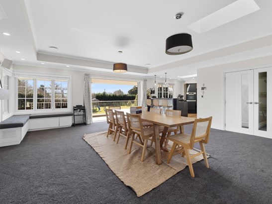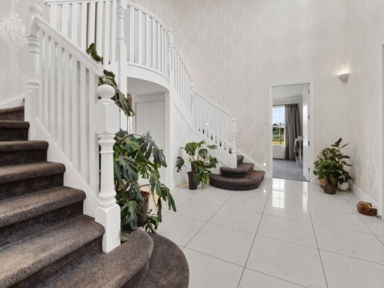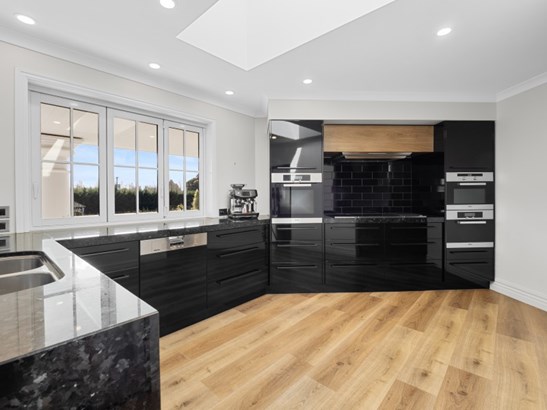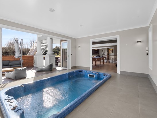 From the moment you enter the tree-lined driveway, you’ll know this property is something special. Step inside and be greeted by a grand tiled entrance and staircase that set the tone for this exceptional residence. This home offers incredible space, privacy, and flexibility – perfect for multi-generational living or those who love to host. Downstairs there are three well-appointed bedrooms, including a main suite with walk-in robe, ensuite, heat pump, and doors opening to a private patio. A large, tiled bathroom, separate urinal, and a thoughtfully designed laundry with excellent storage, plus a walk-in storage cupboard. An expansive games room and bar area opening out to a generous patio – the ultimate entertainment hub. Relax in the large in-ground spa pool, which can be enclosed for privacy. Upstairs, a stunning open-plan living space featuring a sleek black kitchen with walk-in pantry and top-quality appliances. An impressive gas fire anchors the living area, while stacker doors open onto a balcony for effortless indoor-outdoor flow. Spacious separate lounge for extra comfort plus a light-filled office, perfect for working from home. The master suite is a true retreat – with walk-in robe, elegant ensuite, and balcony access. A convenient powder room completes this level. Two single garages with internal access (one currently set up as gym), plus an additional double garage and single garage for all your vehicles and hobbies. Manicured lawns and landscaped grounds create a serene outdoor setting. This home is more than a property – it’s a lifestyle. Whether you’re hosting large gatherings, enjoying family time, or simply unwinding in your own private haven, 60 Tarbottons Road delivers on every level. An entertainer’s delight, an ideal solution for large or extended families – the possibilities here are endless.