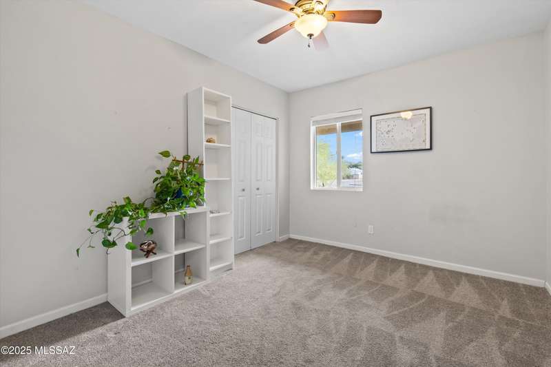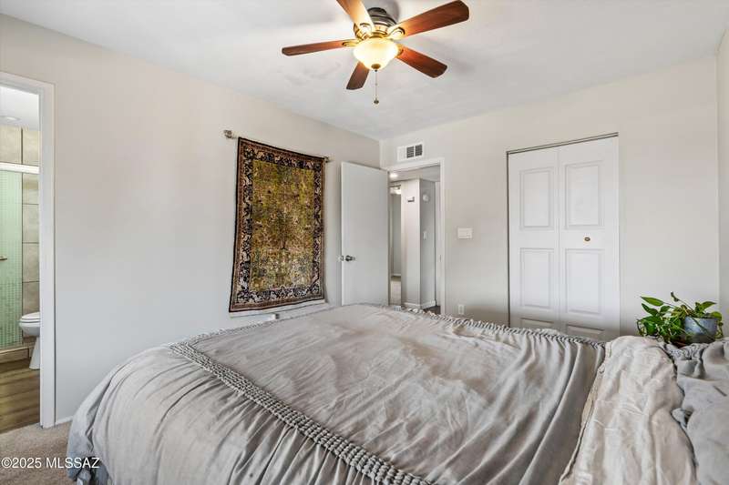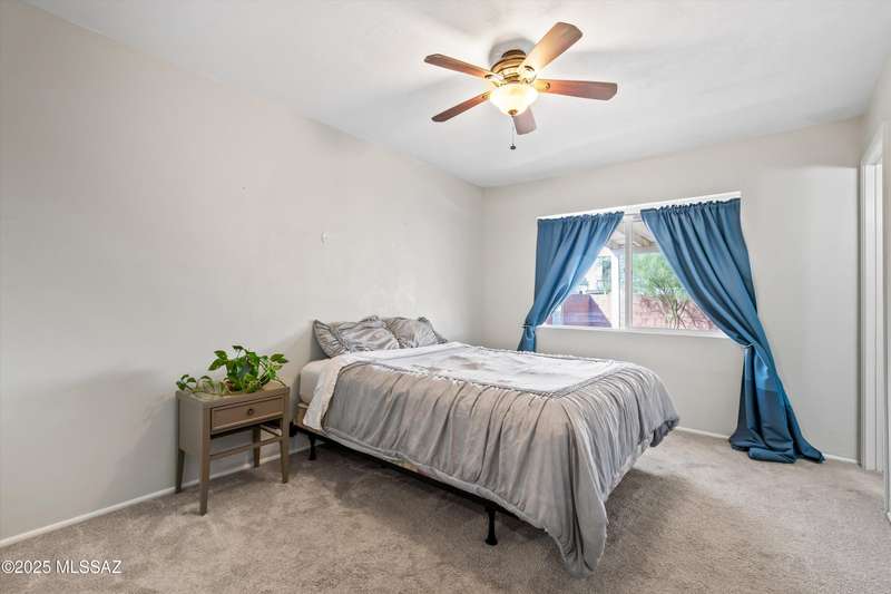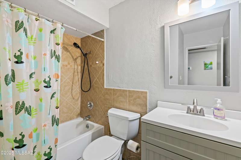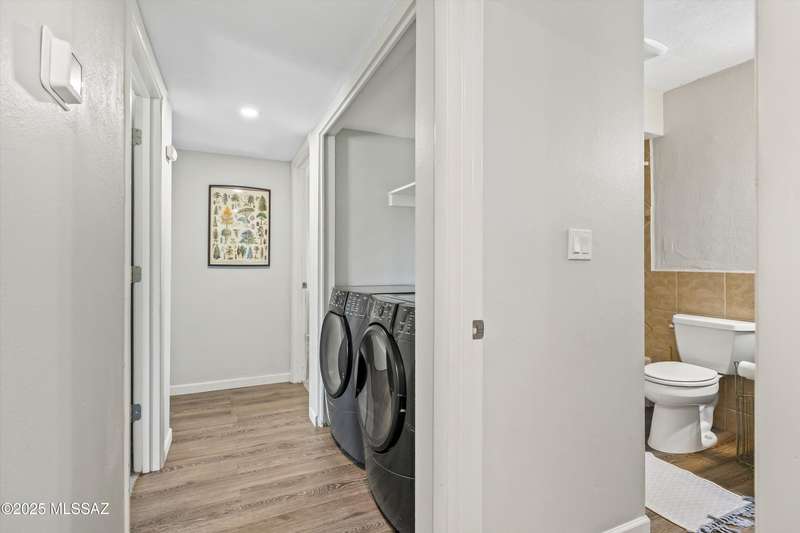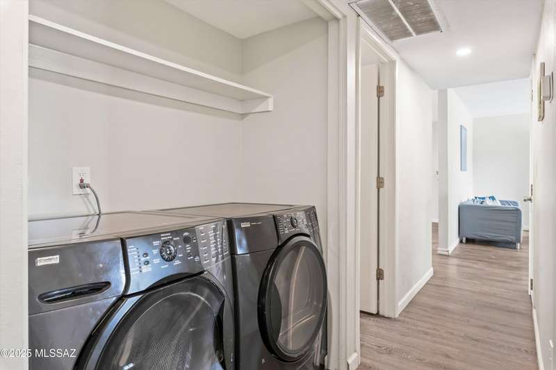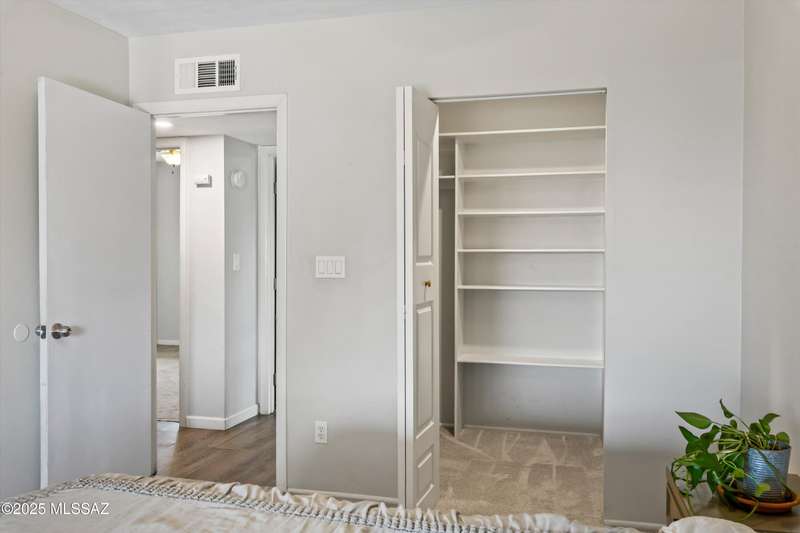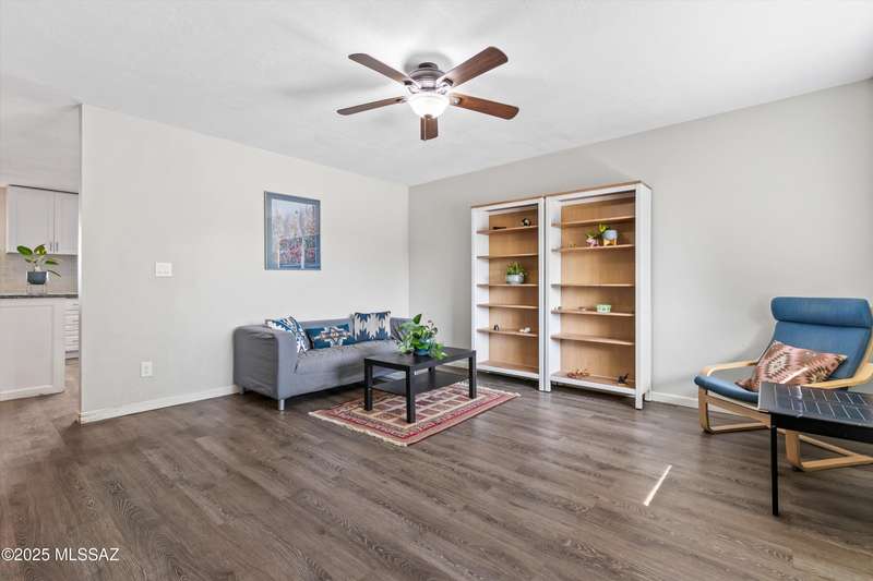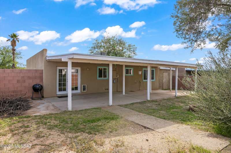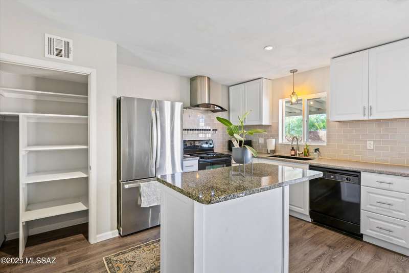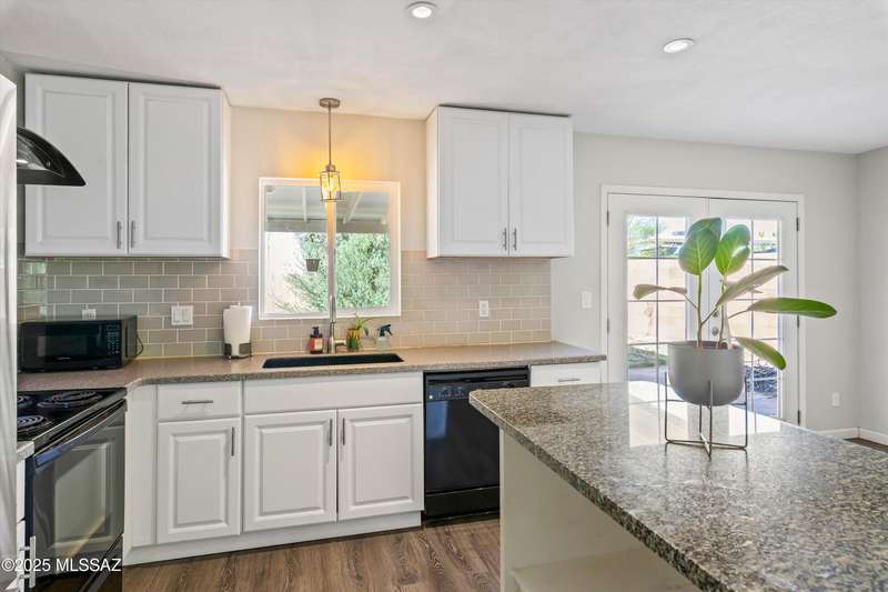 Centrally located, 1200 Sq Ft, 3-bedroom, 2-bath home on a spacious corner lot. This bright, open floorplan offers easy-care wood-look vinyl flooring in the main living areas and stylish modern touches throughout, including updated fixtures, lighting, ceiling fans, and window coverings. The large eat-in kitchen is the heart of the home, featuring a pantry, subway tile backsplash, island with storage, and French doors that open to a generous covered patio--perfect for entertaining. The primary suite includes a private bath and walk-in closet for added comfort and convenience. Enjoy the oversized enclosed backyard with a storage shed and endless potential for gardening, play, or your personal touch. A covered carport, air conditioning, washer and dryer complete this inviting property.