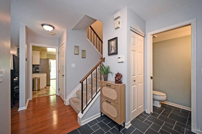 Lovely condo in Chestnut Station in Hyde Park! Large windows to bring in the light. As you walk in, beautiful, engineered hardwood floors on the first level. Bromwell gas fireplace for the colder months. Kitchen is updated with granite countertops and under mount lights, nice backsplash, garbage disposal, recess lighting, faucet 2025, wine cooler included and a walkout to the fenced in back patio. There is first floor laundry! 1st floor half bath w/granite counters. 2nd floor offers cozy carpet throughout. Primary bedroom includes a ceiling fan and has a spacious walk-in closet. Primary bathroom includes: faucet 2020, recess lighting and a new light fixture 2025. 2nd floor full bath includes a granite vanity and an updated light fixture. On to the spacious clean basement, and a blank canvas to make it your own! Enjoy direct access to Wasson Way Park on a gravel path. Come see enjoy the Chestnut Station amenities: clubhouse, pool, newly finished tennis & pickleball courts!