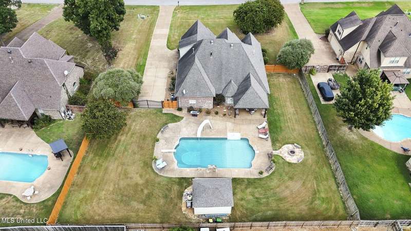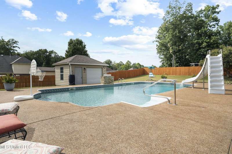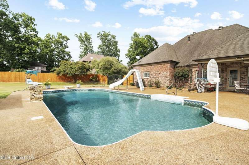 Beautiful Brick Home with Pool in Quiet Neighborhood - PRICE IMPROVEMENT - NOW $449,900This charming brick home offers the perfect blend of convenience and tranquility. Located close to shopping, dining, and entertainment, yet tucked away in a quiet neighborhood that feels like the country.Inside, you're greeted by an open and light-filled floor plan with plantation blinds throughout the home. The spacious living room flows seamlessly to the dining room, while the kitchen boasts granite countertops, ample cabinet space, a breakfast bar, and a cozy dining area that overlooks the backyard pool. On either side of the kitchen's dining area, you will find a sitting area with built-in bookcases and a dedicated office nook complete with a built-in desk. Refrigerator remains.The home features a split-bedroom layout with 3 bedrooms and 2 baths on the main level. The primary suite offers a shiplap accent wall, and a spa-like en suite with a jetted tub, stand-up shower, and dual closets. Secondary bedrooms are well-sized, and all downstairs baths feature granite countertops. Flooring includes tile in wet areas, wood in the living and dining rooms, and carpet in bedrooms.Upstairs, you'll find a 4th bedroom/large bonus room, and an additional flex space perfect for a playroom, sitting area, or media room, and a full bathroom.Additional highlights include a new ADT security system and a fully fenced backyard.Step outside to your private backyard oasis featuring a covered patio, fully fenced yard, sparkling swimming pool for summer fun, and a fire pit for cozy fall evenings. The pool was closed for the season on Oct 1, but listing agent can provide photos and videos. This home is a must-see for anyone seeking comfort, space, and a perfect setting for entertaining.Recent updates include: New carpet in 1st floor bedrooms (2023)New tankless hot water heater (2023)New pool liner, pool robot, pool control panel, and salt cell replacement (2023-2024)New dishwasher (2023)New garbage disposal (2024)Fence replaced on 3 sides of backyard (2024)New HVAC unit for 1st floor (2025)