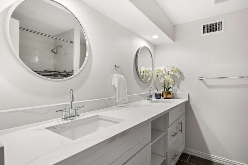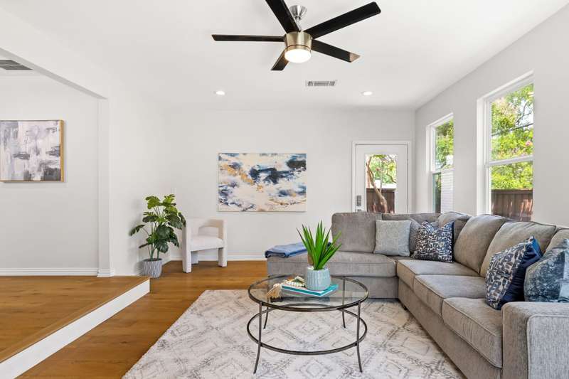 Discover the beauty of Lochwood with this 2-story stunner situated on a corner lot. Natural light soaks the open spaces on this dreamy home, with the perfect floor plan to entertain guests. 2 large living areas, one front & one in back, provide flexibility to create the spaces you desire. Large, inviting kitchen features elegant quartz c-tops & is thoughtfully positioned adjacent to the central dining room. Primary suite is conveniently located on the 1st level & boasts 2 walk-in closets along with a fantastically remodeled bathroom, including quartz c-tops, dual sinks, & oversized frameless glass shower. 2nd level has two generously sized bedrooms, each with a walk-in closet! The bedrooms are separated by the updated guest bathroom, also featuring dual sinks and quartz c-tops. Most walls have been freshly painted with tasteful, neutral tones. Low maintenance yard in back with the perfect deck to soak in the outdoors! Lochwood living at its best, you'll find mature trees & creeks abound. Short distance to Lochwood Park- playground, walking trails, tennis courts, pickleball, basketball court & a party patio. Just a 5 min drive to White Rock Lake, the Arboretum, local eateries & pubs!