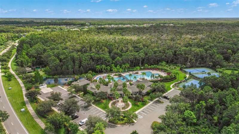 Pristine townhome located in the highly desirable gated community of Live Oak Preserve in New Tampa. This spacious and light-filled home features 3 bedrooms, 2 full bathrooms, 1 half bathroom downstairs, and a 2 car garage. The welcoming foyer opens to a large great room and adjacent dining area that is perfect for entertaining. The kitchen boasts maple cabinetry, a breakfast bar, Kohler double basin enameled cast iron sink, and Whirlpool stainless steel appliances. Washer and dryer are included. Ceramic tile flooring throughout the first floor and two sets of 8-foot sliding glass doors provide a bright and open feel. Upstairs, the primary suite offers hardwood floors, a generous walk-in closet, and a beautifully appointed en suite bathroom with dual sinks and a walk-in shower. Two additional bedrooms provide ample space for family or guests. Enjoy maintenance-free living with exterior structure maintenance, lawn care, landscaping, trash, and irrigation included in the rent. Live Oak Preserve offers resort-style amenities including a 24-hour manned gate, community pool, clubhouse, tennis courts, fitness center, and playgrounds. Conveniently located near fabulous restaurants, shops and entertainment. Don’t miss this opportunity to live in one of New Tampa’s premier communities!