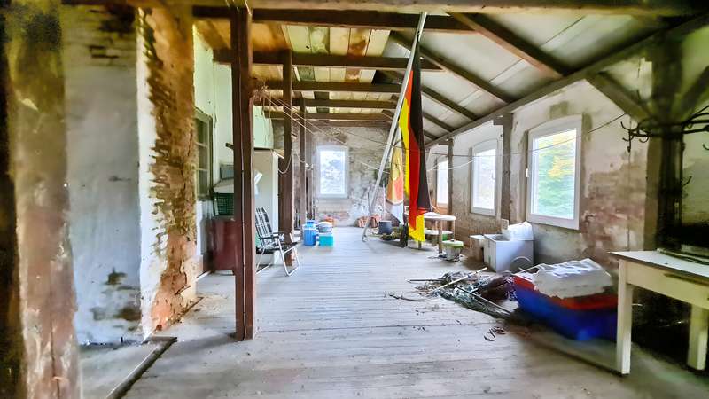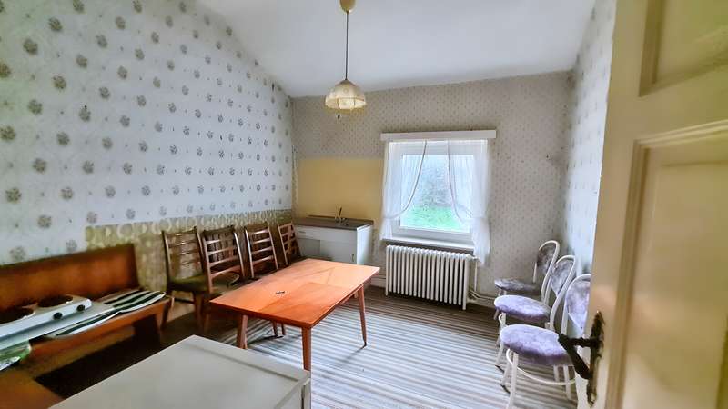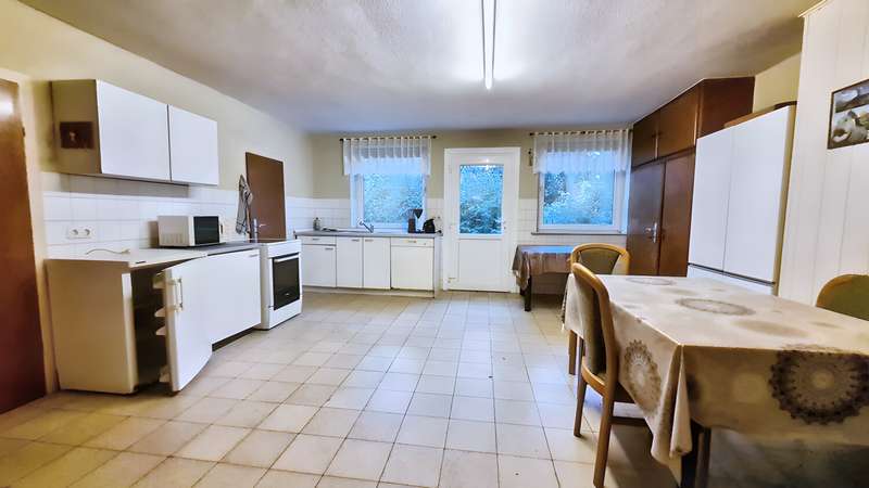 Welcome to an attractive remaining farmhouse with numerous possibilities, which impresses with its generous living space of approx. 210 m² and an exceptionally large plot of approx. 14,304 m². The house is located on the outskirts of the village in a natural setting and combines the advantages of country living with a solid foundation for creative design concepts. The property is spread over a total of six rooms and thus offers sufficient space for individual use - whether as a spacious family home, multi-generational living or living and working under one roof. On the first floor, the central hallway leads into the spacious living room, which is pleasantly lit by large windows. The adjoining fitted kitchen is included in the purchase price and forms the focal point of everyday life. There are also two functional bathrooms on this level - ensuring comfort even for larger households. The upper floor and attic offer expansion reserves that leave room for further design ideas. Here you can create additional living or work spaces according to your own ideas. The partial basement is ideal for storage and provides additional storage space. Features include modern central heating and a septic tank with a contemporary 3-chamber system. This ensures smooth running in daily use. Outside there is a spacious barn and a stable. The existing pasture area can be purchased additionally if desired and opens up a wide range of possible uses, for example for animal husbandry or as an extension area for agricultural purposes. An idyllic pond rounds off the overall picture and creates a special atmosphere. The garden shed is ideal for various leisure activities or craft projects. The extensive garden offers plenty of space for relaxation as well as for creating flower beds or kitchen gardens. The house, which is in need of renovation, offers you the rare opportunity to design a property with great potential entirely according to your own ideas and thus create a permanent home in the countryside. Use the various areas and outbuildings as required - whether for keeping horses or small animals, hobbies or agricultural use. The well-balanced space on offer, coupled with the development potential of the existing expansion reserves, should be emphasized. The location on the outskirts of the village ensures living and recreational opportunities close to nature, yet shopping facilities, schools and other amenities can be reached within a few minutes by car. If you are looking for a spacious remaining farm in a rural setting and enjoy individual design options, this offer could meet your expectations. Arrange a viewing appointment and see the versatility of this property for yourself.