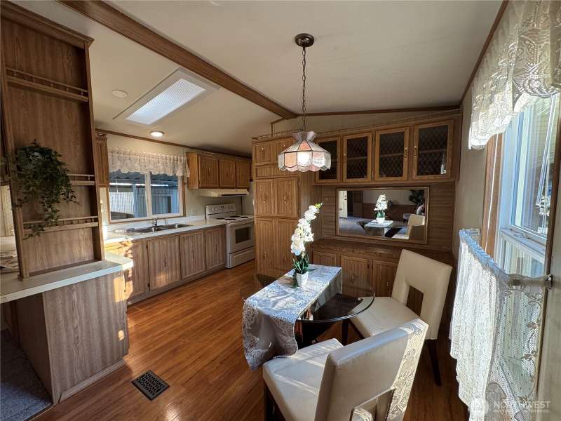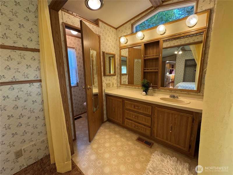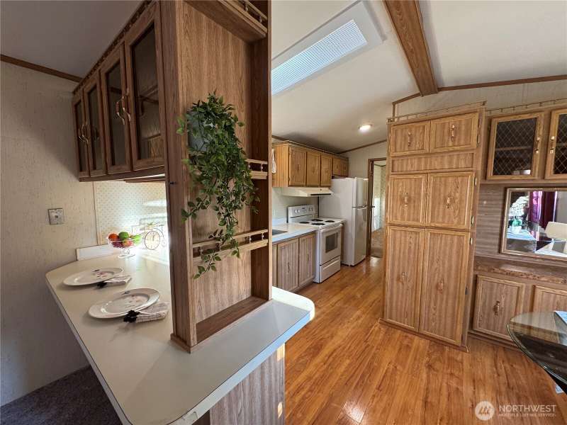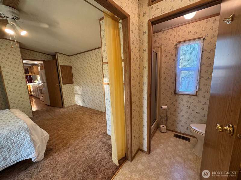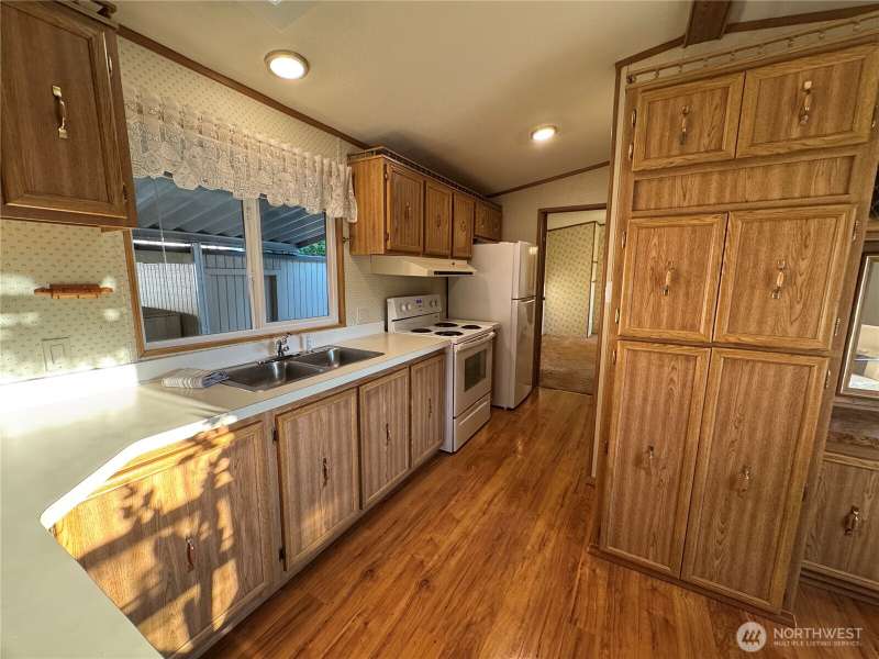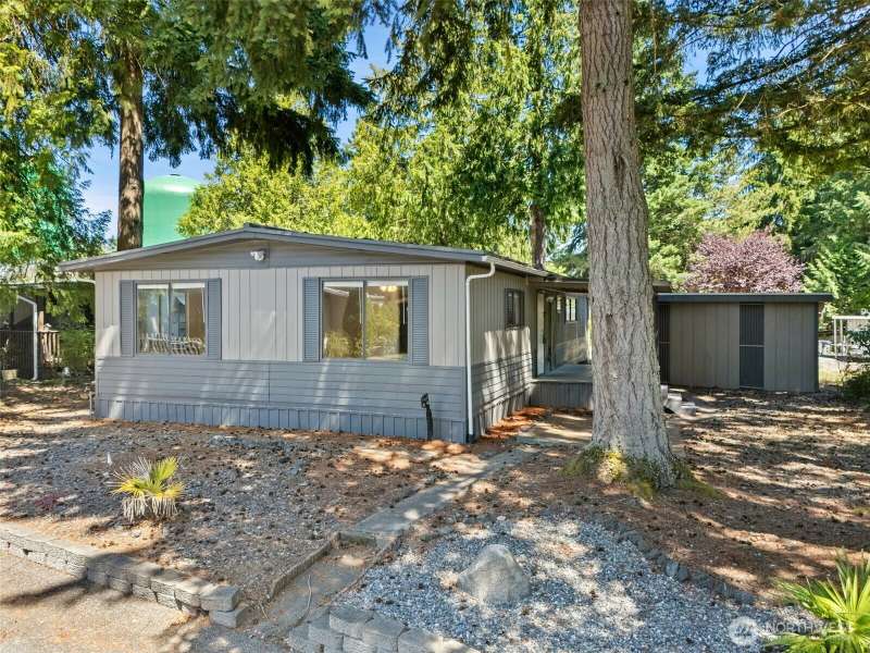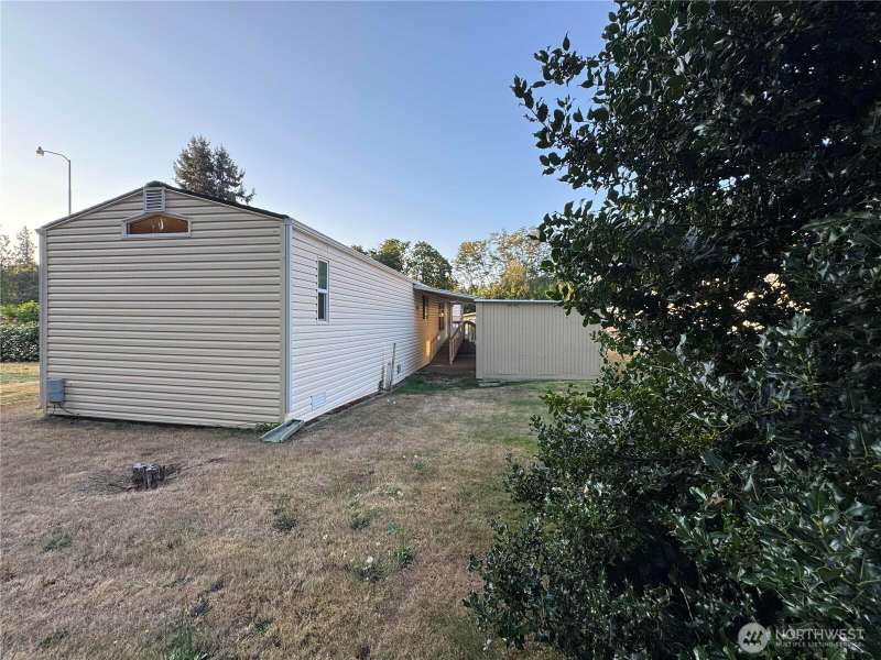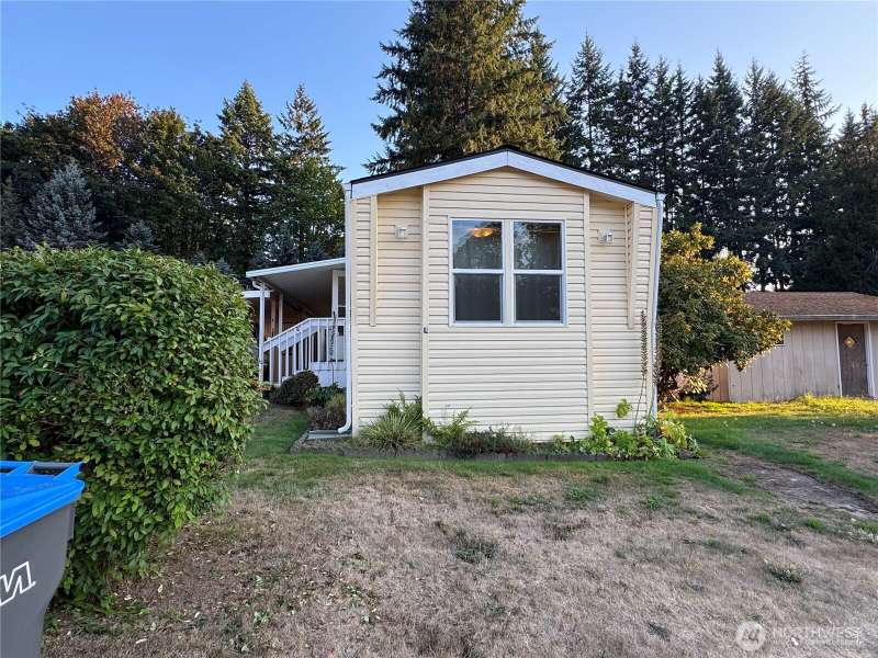 Welcome to Golden's Mobile Home Park. A small community with easy access to Bremerton, Silverdale, highways and more. This 1991 home offers ample space with 2 bedrooms, 2 bathrooms, an oversize living room space with so many options for lounging, relaxing or entertaining. End unit with loads of parking space in the driveway and covered carport. Ramp installed for easy access inside. Newer roof & gutters, newer - taller toilets, newer water heater & refrigerator. All appliances stay. Primary suite offers a soaking tub plus private walk in shower and commode. Second bedroom at the opposite end of the home offers privacy and connects to the second full bathroom. Shed for storage or tinkering. Park approval required.