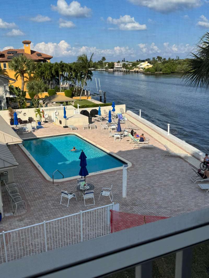 DIRECT INTRA COASTAL WATERFRONT CONDO. 2 bedrooms 2 baths. Lanai with million dollar views of ICW! Screened in. Open floor plan great location. Heated pool clubhouse fitness room library/card room common laundry 1 parking space. I live here I love it. Close to PBI, train station, restaurants, shopping and beautiful So Florida Beaches! Be in for the Boat parade in December. Beautiful wildlife float and fly by. Pool deck with lounge chairs BBQ area! Just pack your personal things and come make memories and enjoy yourself with loved ones and friends. Payment due in full prior to moving in.