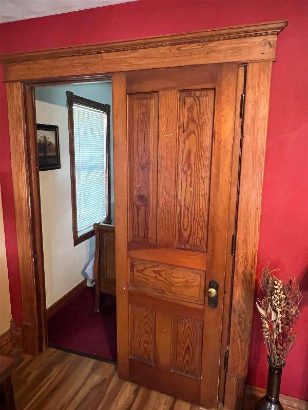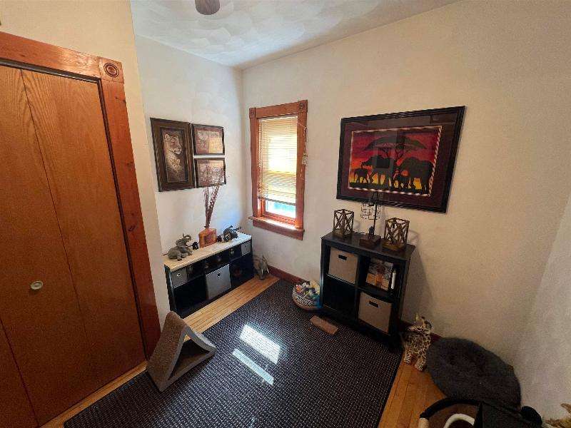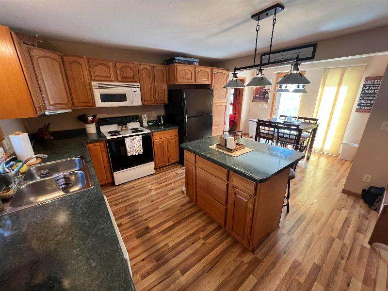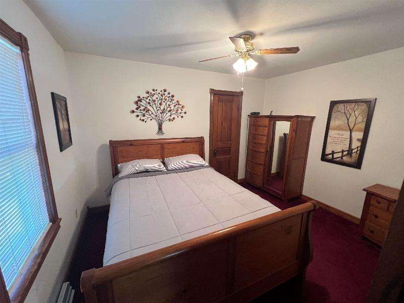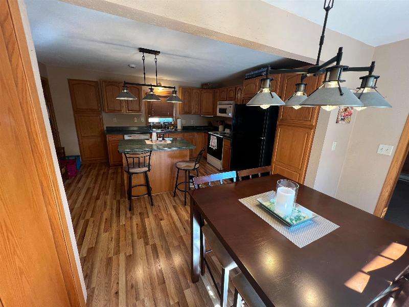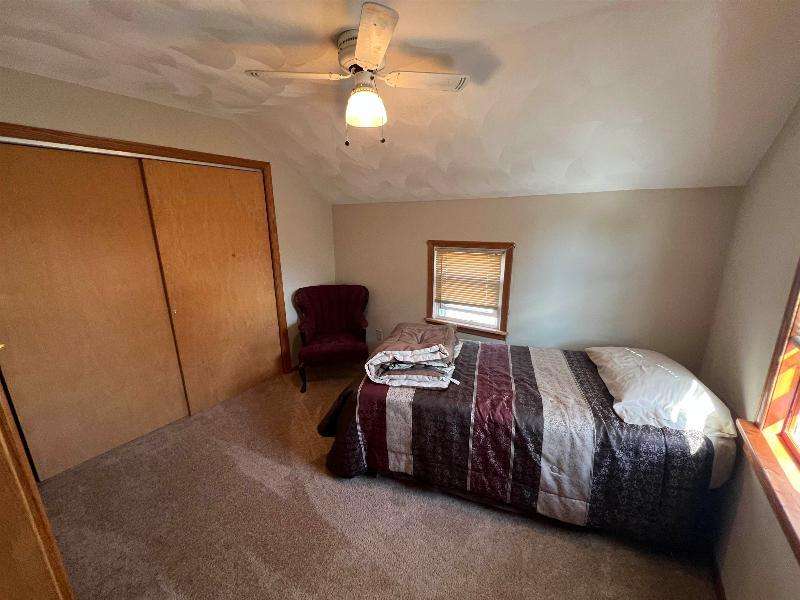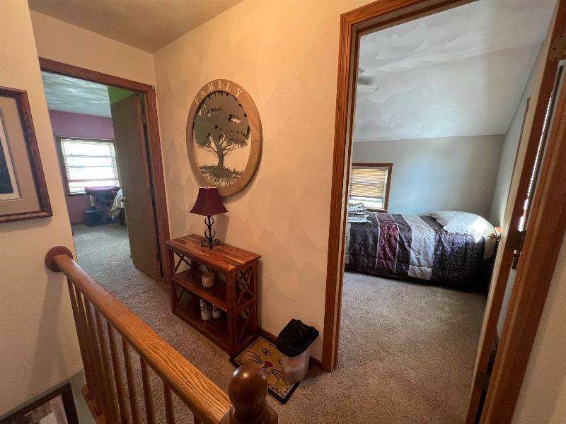 Step into timeless charm with this beautifully maintained home featuring rich woodwork, original pocket door, and a cozy knotty pine family room that exudes warmth and character. Enjoy the convenience of main floor laundry, a formal dining room plus a sunny breakfast nook, perfect for both everyday living and entertaining. Relax on the covered front porch or unwind on the back deck and enjoy the privacy of the fully fenced backyard. The metal roof and newer windows in the dining room and upstairs offer durability. Situated on a corner lot, just steps from downtown shops, restaurants, schools, parks, lakes, and the brand new Kwik Trip -- this location combines small-town charm with modern convenience.