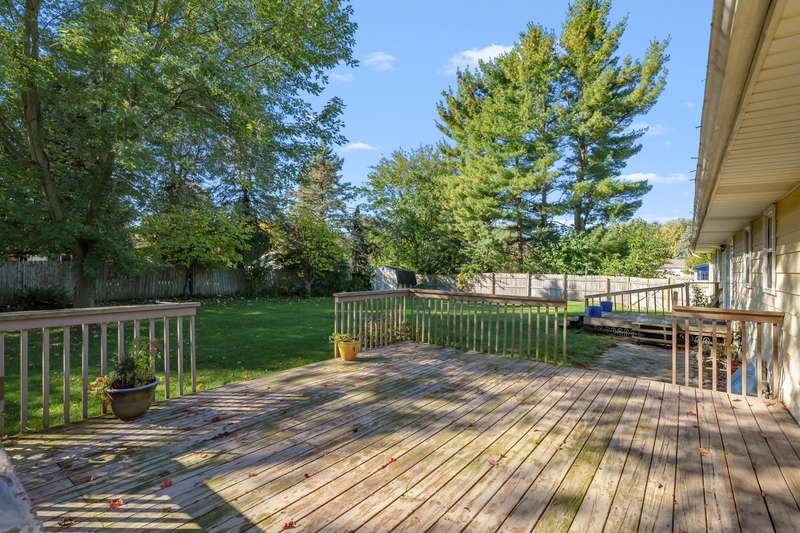 Well maintained ranch in a desirable Portage neighborhood! You'll love this charming ranch that has been well cared for. Beautiful plantation shutters add a touch of style throughout, and recent updates include a new garage door opener, carpet in the family room, a Safe Step tub, and sump pump. The home offers a nice, functional floor plan with a spacious living room and a separate cozy family room featuring a brick fireplace. The kitchen has plenty of cabinet and pantry space plus a bright eating area. Three bedrooms on the main level are conveniently located near a full bath with the primary bedroom connected. A half bath is ideal off of the family room. Laundry is plumbed for either the main floor bathroom or the basement. The lower level offers some finished space with great storage and lots of potential! Enjoy the fully fenced, private backyard with two decks - one off the kitchen and another off the family room. Ring doorbell stays! A wonderful home in the heart of Portage!