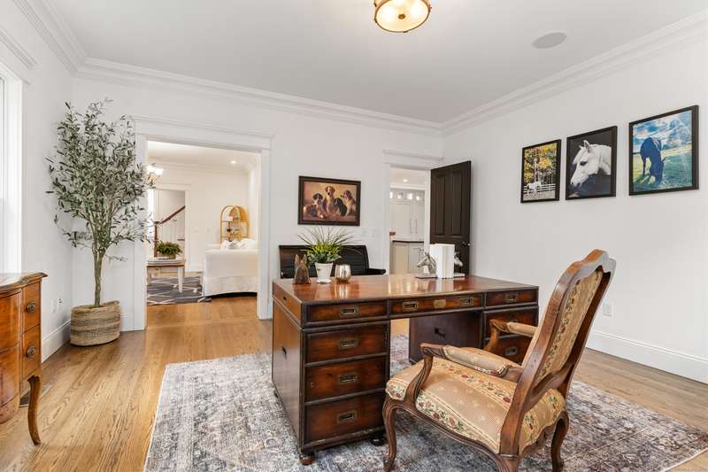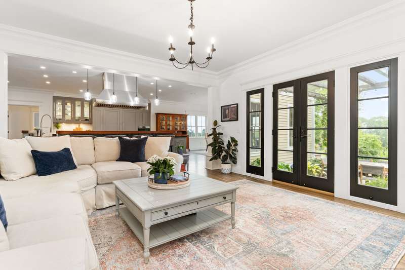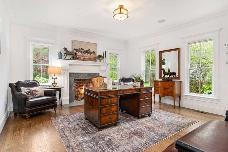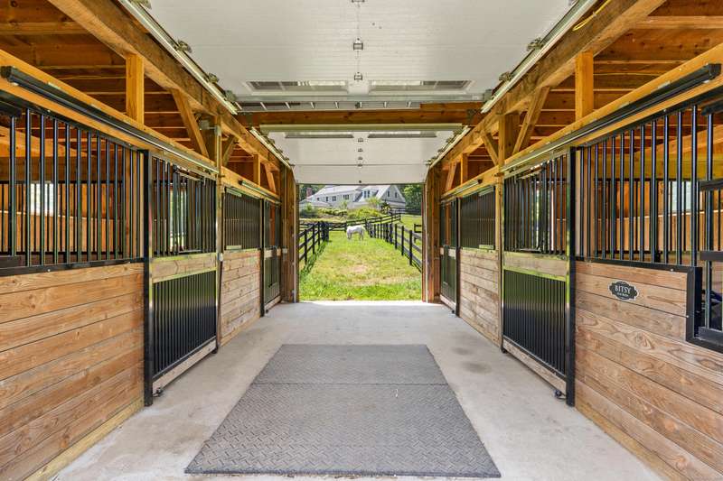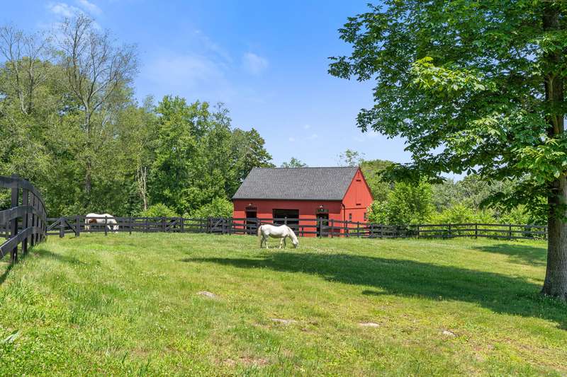 LUXE MODERN FARMHOUSE w/4-STALL BARN on OVER 10 ACRES! Nestled deep within a private enclave of fine homes, this expansive 4-bed, 3.5-bath residence offers over 5,100sf of artfully designed living space. At 31 Birch Hill Road, you don't just live...you exhale. The covered front porch sets the tone for the beautifully coordinated aesthetic that awaits just beyond. A light-filled floor plan is accentuated by 9' ceilings, gorgeous hardwood floors, & elevated millwork. Foyer opens to formal living room flowing into home office w/fireplace. A true chef's dream, the kitchen is anchored by a Viking range, matching hood, & seamlessly integrated SubZero refrigerator door & drawer arrangement. Soapstone countertops pair exquisitely w/custom cabinetry providing high design & practical storage. The oversized island doubles as a prep station w/informal dining counter. The space effortlessly continus into adjoining family room, w/2nd flireplace, & spacious dining area. Walls of windows & French door