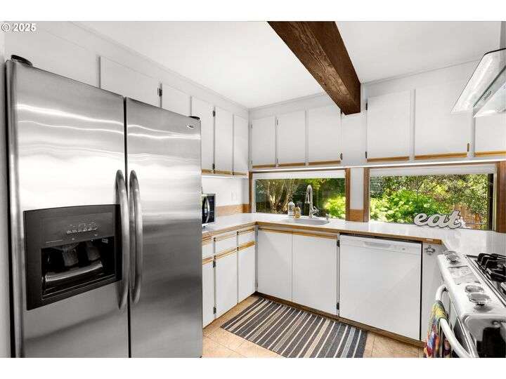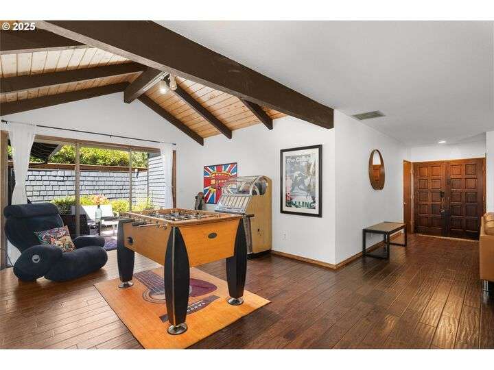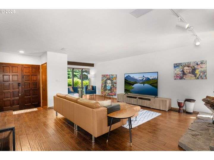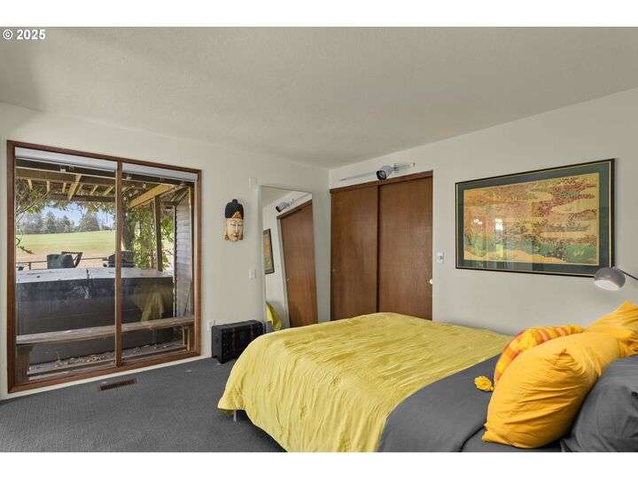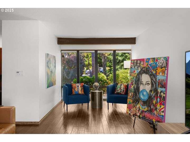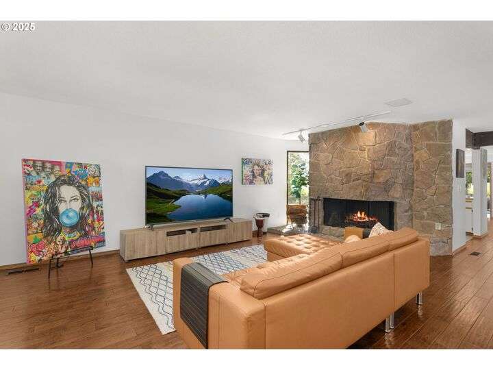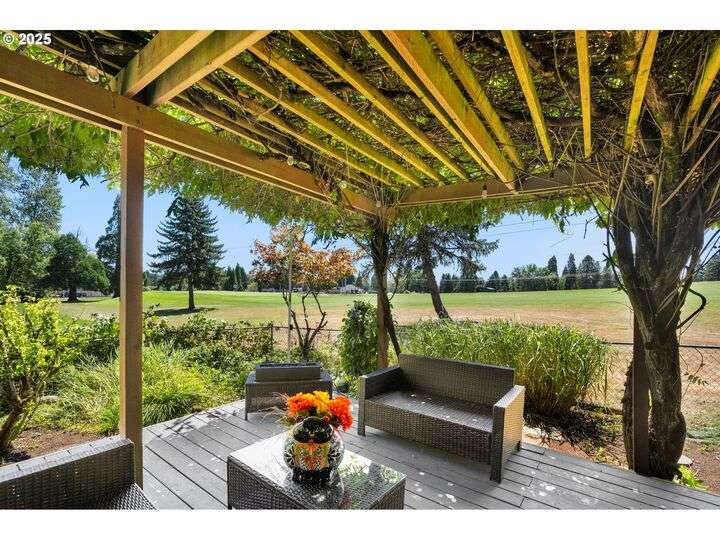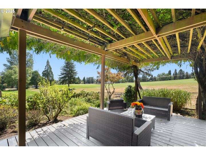 This unique custom mid-mod styled one level home backs to the Rock Creek Country Club fairway. Walk in to the spacious living room featuring a floor to ceiling wood burning rock fireplace, reading nook, and family room/game room area with slider to interior courtyard. Enjoy golf course views from multiple windows while cooking, dining or relaxing in the light and bright sunroom. The large master bedroom is a perfect zen retreat with a large walk in closet, bathroom and slider to a lovely interior courtyard. There are two additional bedrooms and a hall bath to accommodate guests or a home office. The fenced backyard is perfect for flexing your green thumb, relaxing on the patio under the wisteria while watching the golfers, or taking a late night soak in your secluded hot tub. There is even a golf cart garage. Move in ready with lots of room for your touches. Conveniently located to shopping, restaurants, and the high tech corridor with easy access to Hwy 26 for your PDX commute or a trip to Seaside in just over an hour.