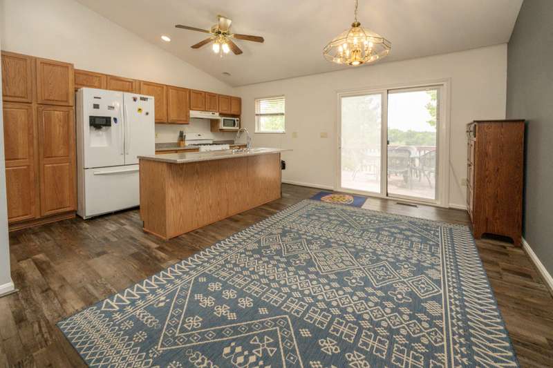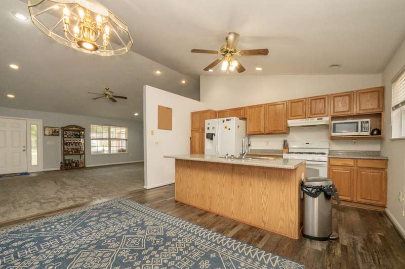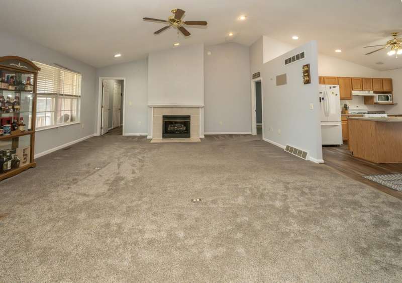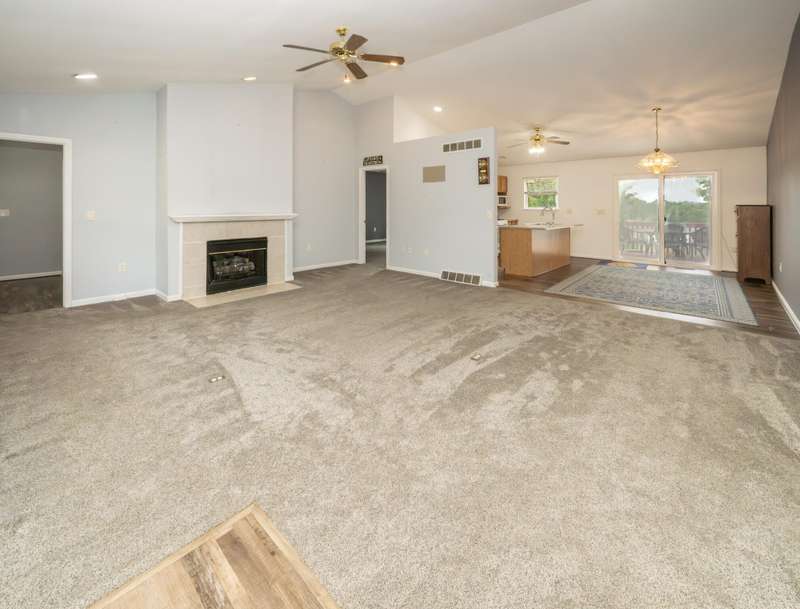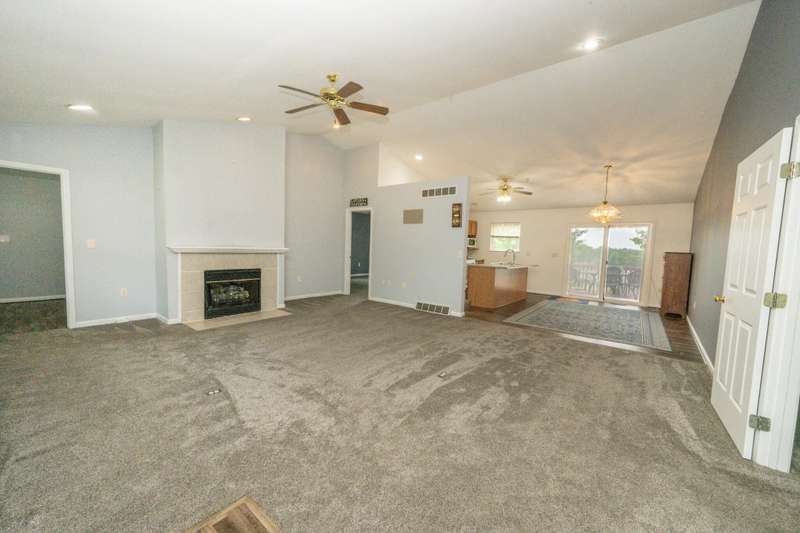 Back on Market! Buyer's financing fell thru. Your opportunity awaits! Well kept ranch with open floor plan and cathedral ceilings. Cozy gas fireplace adds warmth and charm. The full basement features walk-out to a fenced, flat back yard perfect for pets and entertainment. Basement includes a half bath, workshop, and extra finished room suitable for office or additional living space. A great combination of comfort and easy living.