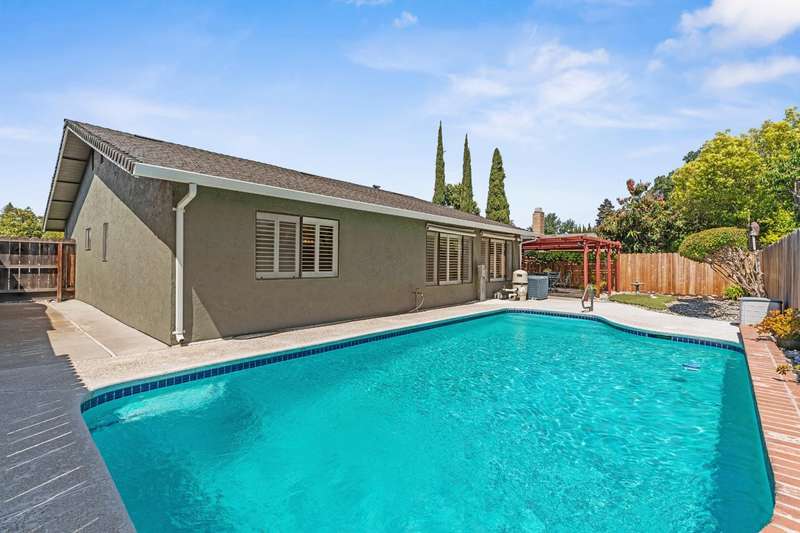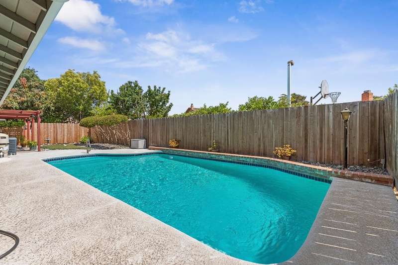 Welcome to this well-maintained 3-bedroom, 2-bathroom home nestled in the Stonewood Estates neighborhood. Featuring a spacious and thoughtfully designed open floor plan, this single-story gem offers both a separate family room and formal living room, providing plenty of space for relaxation and entertaining. A charming brick fireplace adds warmth and character to the family room, while the formal dining area and breakfast nook offer versatile dining options for everyday living or hosting guests. The updated HVAC and newer roof offer peace of mind, while the meticulously landscaped yard adds curb appeal. Step outside to your own private backyard retreat: a sparkling pool, shaded pergola, and beautiful landscaping perfect for enjoying sunny afternoons or evening gatherings. Additional highlights include close proximity to schools, parks, shopping, freeway access and the community pool. Don't miss your opportunity to call 2734 Fallenleaf home!
