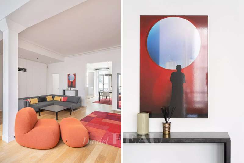 Rue Monsieur le Prince. This elegant near 145 sqm dual-aspect apartment on the second floor of a fine mid 18th century building with a lift features 3.20 metre high ceilings. Beautifully appointed and allying period charm with contemporary comfort and style, it includes a double living/reception room, a contemporary semi open-plan kitchen, a master suite with a bath/shower room and wc, a second suite with a shower room and wc, a possible space bedroom, and a study or dressing room. With a 14 sqm cellar. Possible premises for a self-employed professional.