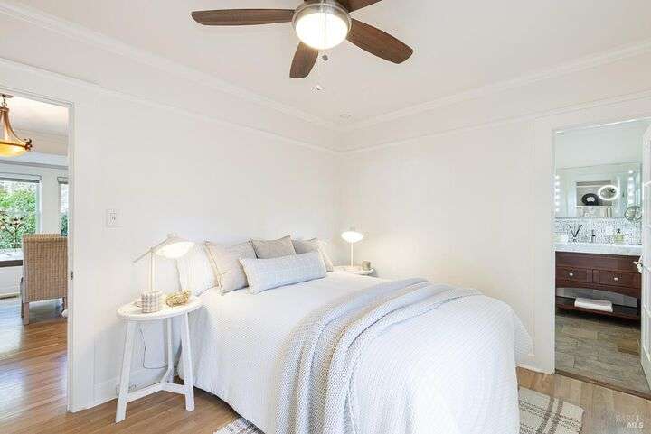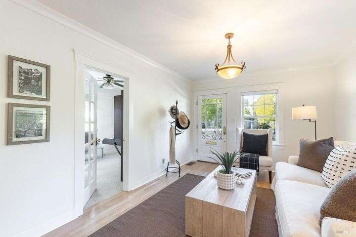 This charming downtown Napa home, built in 1921, perfectly blends historic character with modern updates, creating a serene sanctuary. The residence features two bedrooms and two bathrooms, showcasing beautiful original hardwood floors while maintaining the architectural elegance of the 1920s. Contemporary touches are incorporated throughout for added convenience. Set on a generous quarter-acre lot, this property offers inviting indoor charm and ample outdoor space for relaxation and entertaining. Thoughtful renovations preserve the home's vintage appeal while ensuring comfort and functionality for today's lifestyles. Remarkable classic details and quality craftsmanship are evident in every room, making this a truly unique find. The spacious lot provides endless possibilities for gardening, outdoor dining, or simply enjoying Napa's beautiful weather in your own private retreat.