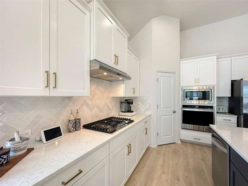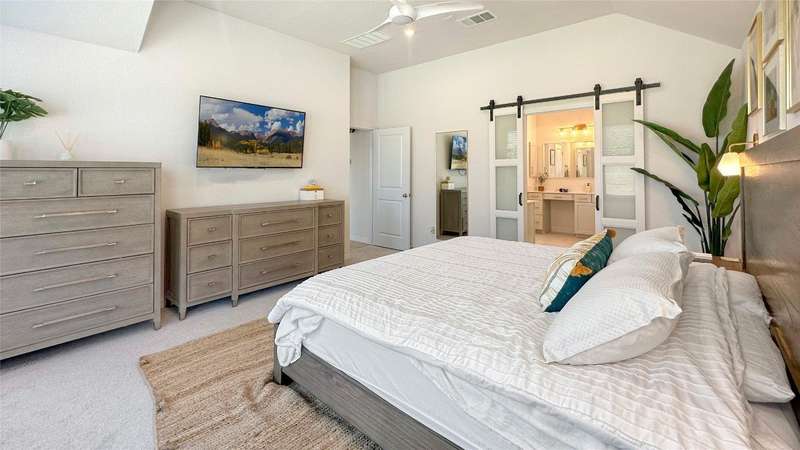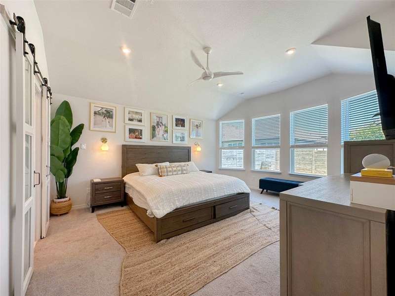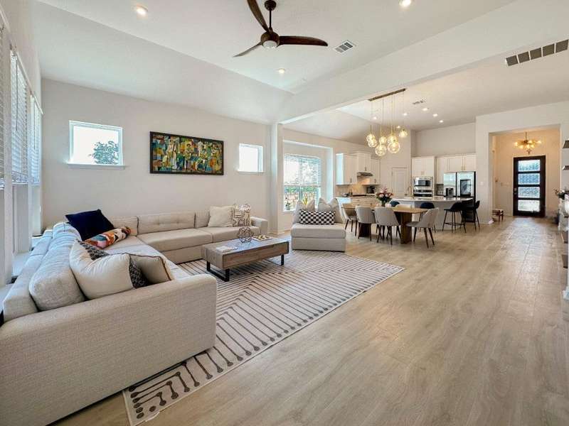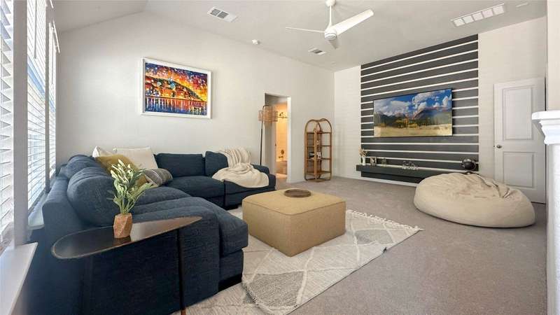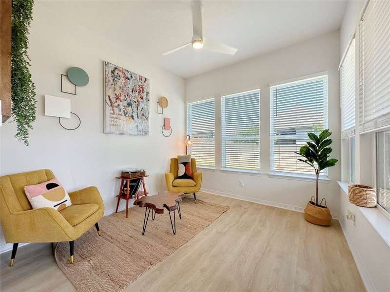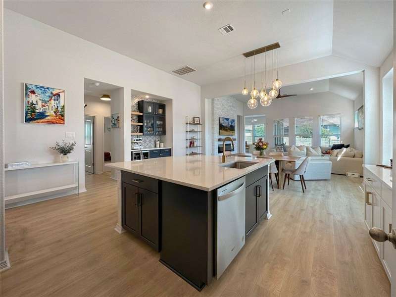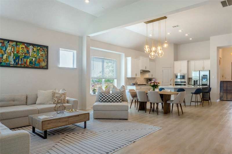 * Additional 7500 Buyers Closing Cost Credit At Closing* This beautifully upgraded home is a true gem, offering $80K in structural upgrades and $25K in interior design enhancements that elevate its charm and functionality. This residence has been thoughtfully customized by the owners, and every detail was accounted for in this lovely, mid-century modern sanctuary, including West Elm light fixtures throughout. The expansive 1.5 story floor plan seamlessly blends modern convenience with elegant design, featuring a customized wine and coffee bar, a stunning stone statement wall with a fireplace, and high-end appliances complemented by sleek quartz countertops. Additional upgrades include a spacious home office, a serene sunroom, and a versatile upstairs loft—providing ample space for every need, and perfect for a mother in law suite/teenager space, or a guest haven. The elegance continues in the backyard offering a privacy fence, a built-in gas pizza oven, that can easily embrace an outdoor kitchen design by its new owners. The artificial turf allows an entertainment area, leaving the natural grass ready for a plunge pool or play area. The home is equipped with an upgraded garage consisting of: a Tesla wall charger, automatic irrigation system, additional storage, water softener loop, mounted mirrors, and epoxy flooring, making this home as practical as it is beautiful. This is a rare opportunity to own a home that combines luxury, comfort, and thoughtful customization in every detail. Located walking distance to Wolf Ranch Elementary, River Camp Amenity Center, community pool, and picturesque walk and bike trails. This home has a feeling you just have to experience for yourself! Come and see it today!