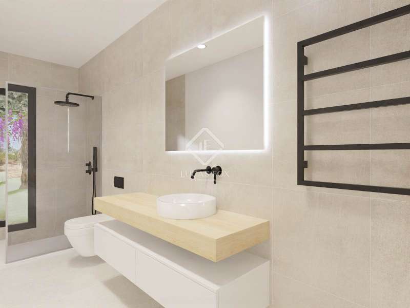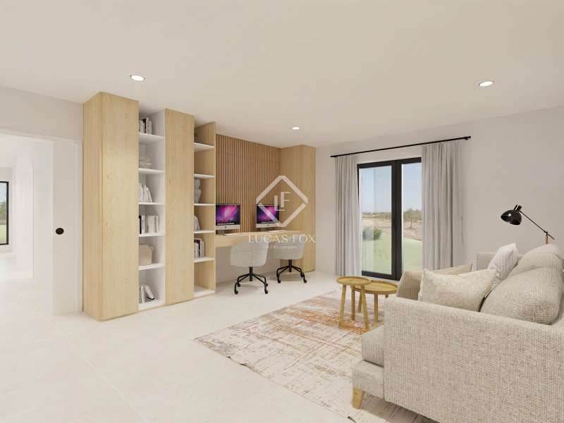 This beautifully designed single-storey villa combines contemporary architecture with Mediterranean warmth, offering a spacious and functional layout ideal for modern family living. Located in a serene residential area, the property features clean lines, generous interiors, and a thoughtful connection to outdoor spaces. Set on a large plot with a total constructed area of 205.61?m², the villa is distributed across a single level and includes four bedrooms, three bathrooms, a guest toilet, and multiple living areas. The heart of the home is a bright 57.49?m² open-plan living-dining room, seamlessly connected to a modern kitchen and adjacent study lounge, creating an ideal space for both entertaining and everyday living. The main suite includes a private bathroom with bathtub, a walk-in wardrobe, and garden views, while three additional bedrooms are positioned in a separate wing, ensuring privacy for family or guests. A separate laundry room and practical distribution areas enhance daily comfort. The exterior features a spacious covered terrace, pergola, and a 32.79?m² swimming pool, perfect for enjoying Mallorca’s sunny climate. An independent poolside pavilion includes a gym/guest room, bathroom with shower, and technical room ideal for wellness, guests, or leisure use. With its harmonious layout and elegant outdoor spaces, this villa offers a unique opportunity to enjoy contemporary living in a peaceful, well-connected location. Please contact us for further information.
