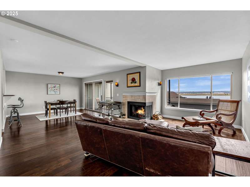 Welcome home to river views and relaxed living. This 1,600 sq. ft. condo offers 2 spacious bedrooms, each with its own private ensuite, plus a half bath for guests. You’ll find hand-scraped engineered hardwood floors, tile in the kitchen and baths, and a cozy wood-burning fireplace in the open living space. Step out onto the covered deck and take in peaceful views of the Columbia River—perfect for morning coffee or winding down in the evening. Stay comfortable year-round with central air and a brand-new furnace. The oversized two-car garage offers plenty of space for parking and storage.Located just minutes from Hwy 14, with a nearby trail that leads straight to Wintler Park and the beaches along the Columbia River, this home blends comfort, convenience, and natural beauty.