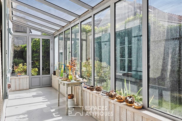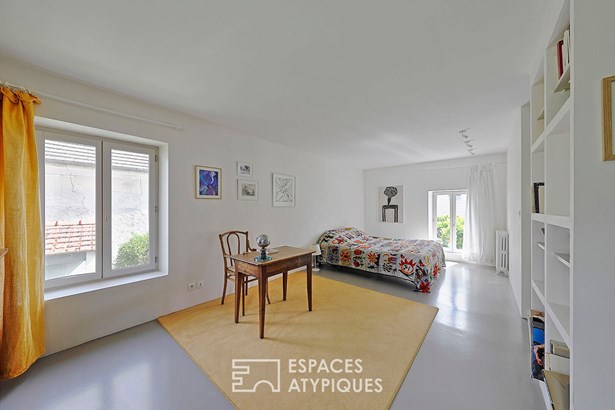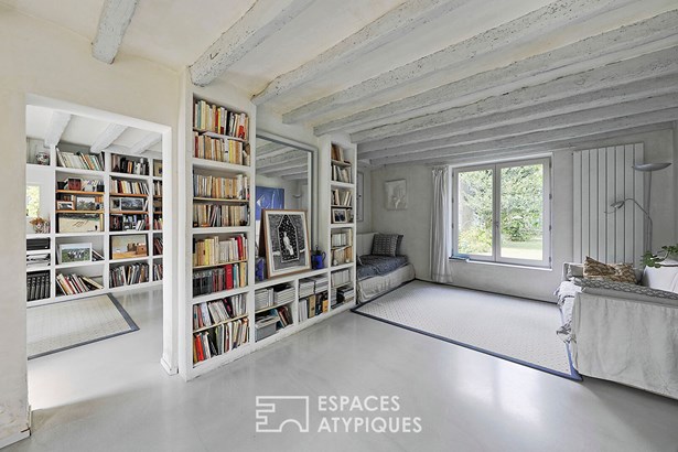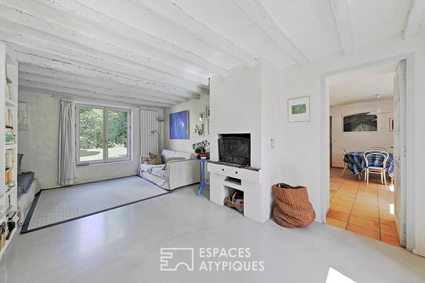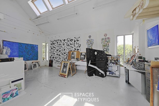 Ancienne fermette et maison renovee, reliees par verriere et ateliers d'artistes