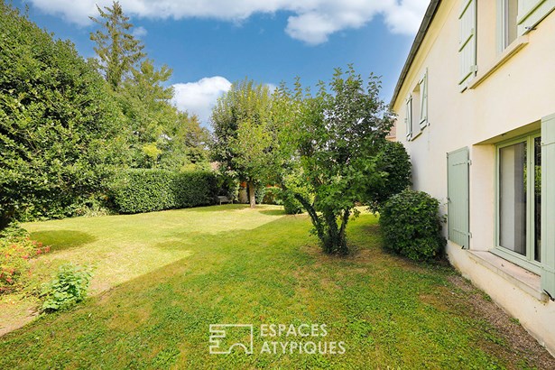 Located in a village just minutes from Meaux and Lizy-sur-Ourcq, this 346sqm property complex offers a unique atmosphere that blends old-world charm with contemporary touches. Set on a vast, unoverlooked 1218sqm wooded garden, it comprises two separate dwellings, two artist studios, and a light-filled glass roof, creating a unique and inspiring living space. The first dwelling, a former 19th-century farmhouse, is charming for its materials and authenticity. The ground floor features a cozy living room with a fireplace, a large family kitchen with a dining area and a small pantry, and an office-library. A large, light-filled glass roof, offering a winter lounge area with its shower room, toilet, and dressing area, connects to two spacious, heated artist studios, one of which has a mezzanine, offering multiple layout possibilities. Upstairs, three bedrooms, one with a dressing room, a bathroom and toilets, and a top attic level with exposed stone and beams, make up modular spaces now converted into a bedroom, office, and intimate living room. The second house, resulting from the renovation of a shed, develops a living room with a kitchen to be finalized, two bedrooms, a bathroom with toilets, and storage upstairs, offering interesting potential for hosting or renting. Outside, a large, flowery, wooded garden bordered by a small river, not overlooked, houses a shed and a carport. This intimate landscaped setting invites relaxation as much as family or artistic projects. The village offers shops, schools, a nursery, a library, and a restaurant, and is located close to Trilport train station, Val d'Europe, and Roissy. An atypical and unique place, designed as a true showcase of creativity and conviviality that combines space, character and freedom of arrangement, ideal for a family or artists in search of space and serenity. ENERGY CLASS: D / CLIMATE CLASS: C Amount of annual energy expenditure for standard use established from energy prices indexed for the years 2021, 2022, 2023 (subscription included) between EUR4,310 and EUR5,880 per year. Contact: Elvire de la MARTINIERE - 06 03 05 05 96 RSAC: 800 930 232 MEAUX