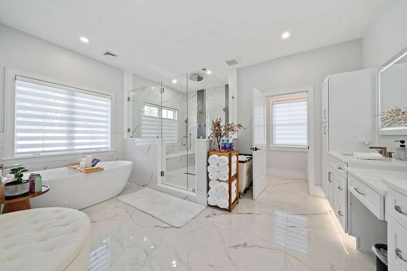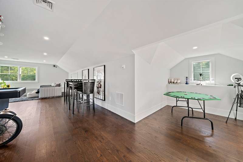 This Breathtaking Contemporary Colonial offers over 6,000 sq ft of thoughtfully designed space that balances elegance with functionality. The main level with an open floor plan highlights a gourmet chef s kitchen with high-end appliances, custom cabinetry, & center island, an adjoining spacious family room with coffered ceilings, gas fireplace and built-ins, a stylish piano room / living room and a champagne lounge that can also serve as a sophisticated office. The lower level boasts a private home theater with tiered seating and an expansive exercise room with a full bath. Upstairs showcases a spectacular primary suite, three additional bedrooms, and serene, spa-like bathrooms, while the third floor provides extra space as a playroom, guest suite, or in-law quarters with a full bath. Outdoors, a heated saltwater pool, oversized patio, and built-in audio create an entertainer s dream. Located minutes from highway access, this property offers both convenience and unparalleled luxury.