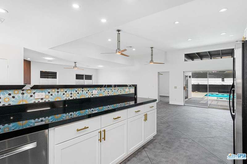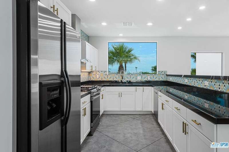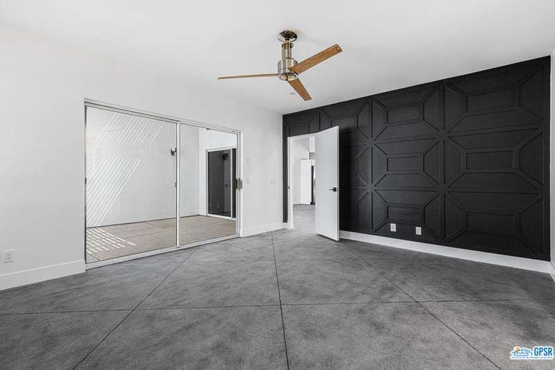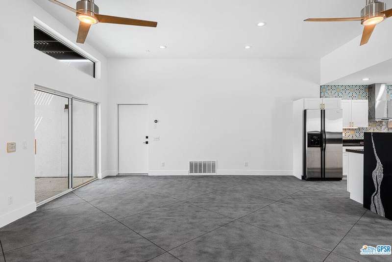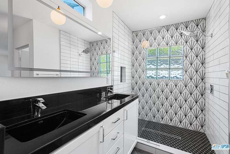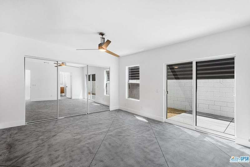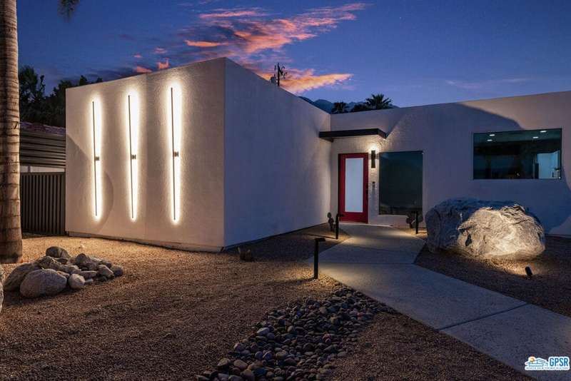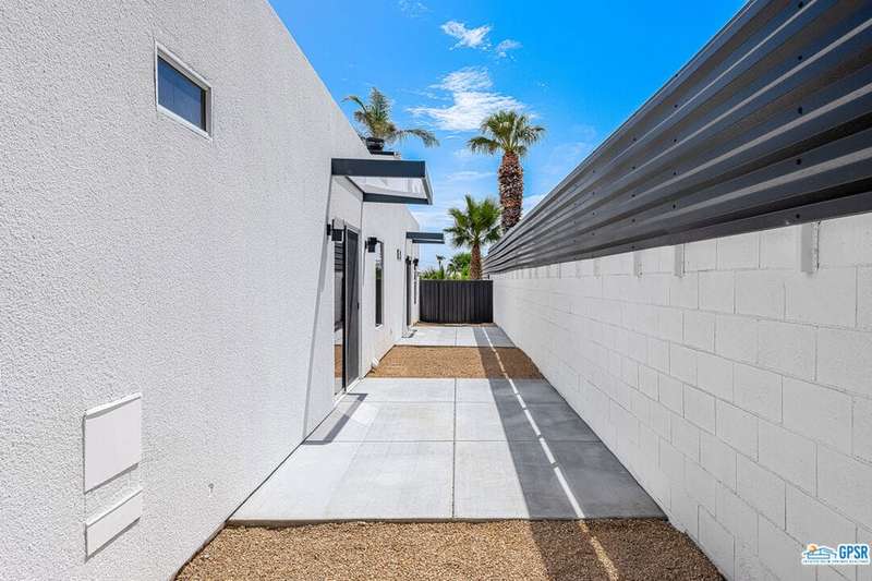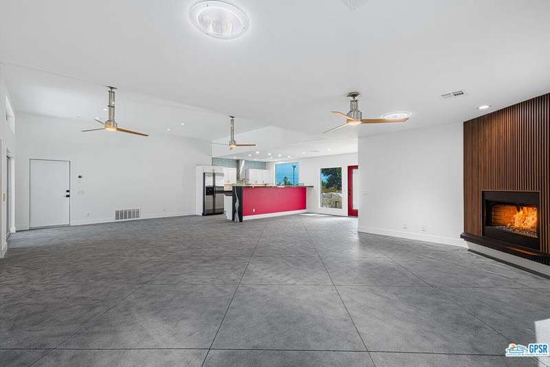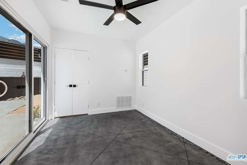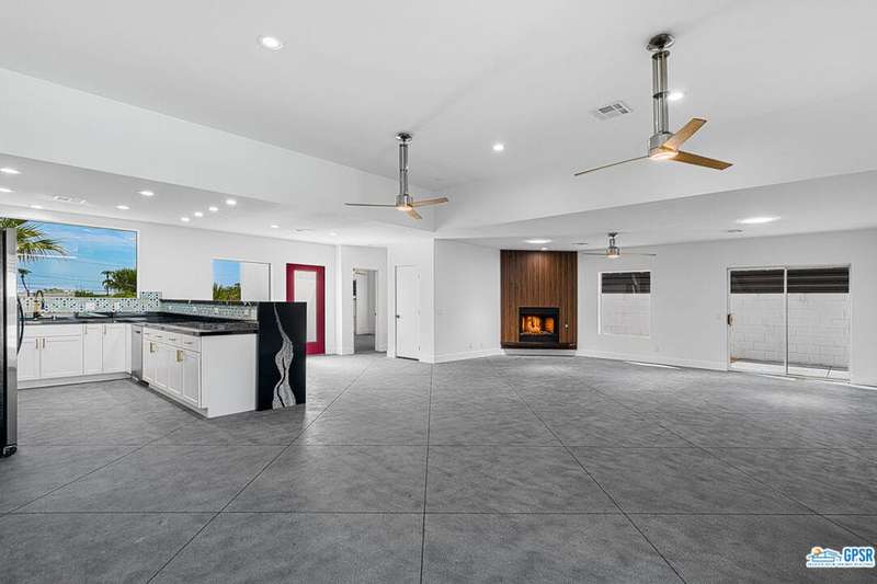 Contemporary and stylishly updated 3-bedroom, 3-bathroom home in the Chino Canyon neighborhood of Palm Springs. The main house features an open-concept kitchen with a generous bar area, sleek concrete floors, and a spacious living room with a gas fireplace, ideal for comfortable everyday living and entertaining. Two primary suites include walk-in showers and sliding doors that open directly to the outdoor space. A detached guest house offers a private third bedroom and bathroom, perfect for visitors, extended stays, or a dedicated home office. Step outside to take in stunning mountain views from the pool and spa, or unwind by the built-in fire feature under the desert sky. Additional amenities include a two-car garage, in-home laundry, and utilities included: solar electricity, water, trash, landscaping, and pool service.