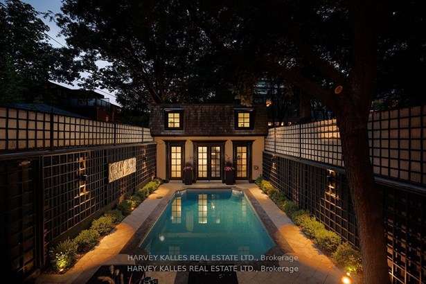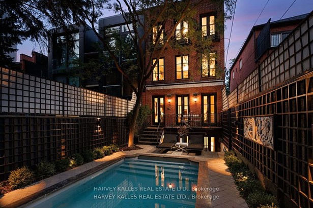 Nestled in the heart of Yorkville on the most coveted street, 112 Hazelton Avenue offers a rare blend of luxury and sophistication, reminiscent of a classic London home in Knightsbridge. Spanning over 4,450 sqft, this freehold detached residence boasts four storeys, 4 spacious bedrooms, each with elegantly designed ensuite bathrooms, plus a convenient powder room. With stunning Juliette balconies and the finest finishes throughout, this home presents an exceptional alternative to condo living, offering more space and no condo fees, all at just over $2,000 per sqft a great value for this prestigious location. A beautiful kitchen with a breakfast area complemented by the open concept living and dining areas all overlooking a private terrace and your own private pool, creating the most intimate urban oasis, great for entertaining. A rare 2-car garage/coach house adds an additional level of convenience and exclusivity. The majestic primary suite, at over 1,115 sqft, serves as an ultimate retreat, featuring custom built-ins, a cozy fireplace, a sitting room/office with skylights, a luxurious ensuite, and an opulent dressing room. The lower level boasts 9-foot ceilings and a glassed-in, temperature-controlled wine cellar that holds up to 870 bottles. It also includes an entertainment/family room, a luxurious guest suite with ensuite, and direct access to the private terrace and pool, accessible from both the east and west sides of the home. Located just steps from exclusive shopping, fine dining, and world-class gyms, 112 Hazelton Avenue is ideal for urban executives, empty nesters, and families who value luxury and location. Currently tenanted for $27,000/month until mid-December, with tenants covering utilities and maintenance, this home offers an exceptional investment opportunity in one of Toronto's most sought-after neighbourhoods.