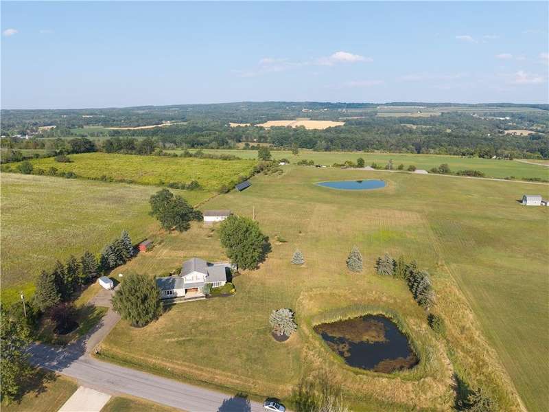 HILLTOP RETREAT WITH BREATHTAKING VIEWS - 4 TO 5 BEDROOM SPLIT-LEVEL HOME - Perched atop a scenic hill with panoramic views for miles, this spacious 4-5 bedroom, 2.5 bath split-level home offers the perfect blend of comfort and country charm. Inside, you'll find gorgeous gleaming hardwood floors, a chef's dream kitchen recently renovated with cherry cabinetry, pantry, pull out shelving, and all of the appliances - you name it. Bright and spacious living room with picture window overlooking the valley. Family room leads to the knotty pine great room with cathedral ceilings, ceilings and wood pellet stove that is ideal for those chilly days. The full, partially finished basement provides flexible space for storage, recreation, or a home office. Step outside to enjoyed manicured gardens, a peaceful pond, private deck, and a two-car attached garage. Sit on the front covered porch for hours taking in those views or reading a wonderful book. An additional outbuilding with a workshop and electric offers endless possibilities for hobbies or storage. This incredible property is located just minutes from the Village of Dansville and only forty minutes south of Rochester, this property offers privacy without sacrificing convenience.