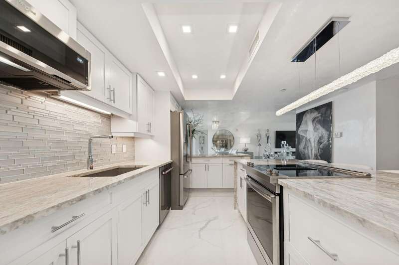 Stunning Oceanfront 2BR/2BA with a classy, contemporary aesthetic. The sleek open kitchen features stylish finishes, bar-top seating, and a bright, airy feel. The primary suite offers a spa-like retreat with a brand-new oversized walk-in shower. Enjoy ocean and Intracoastal views, plus sunrises and sunsets from your private balconies. Tiara offers resort-style living with valet, 24/7 concierge, and a staffed gate. Amenities include a guest suite, heated pool, jacuzzi, tennis, pickleball, fitness centers with steam and sauna, billiards, library, and card room. Enjoy the beachside restaurant--eat in or have it delivered--or dine in the 43rd-floor Marquis Lounge with 360-degree views and nightly dinner service. Just 15 mins to premier shopping, dining, and entertainment, and 20 mins to PBI.