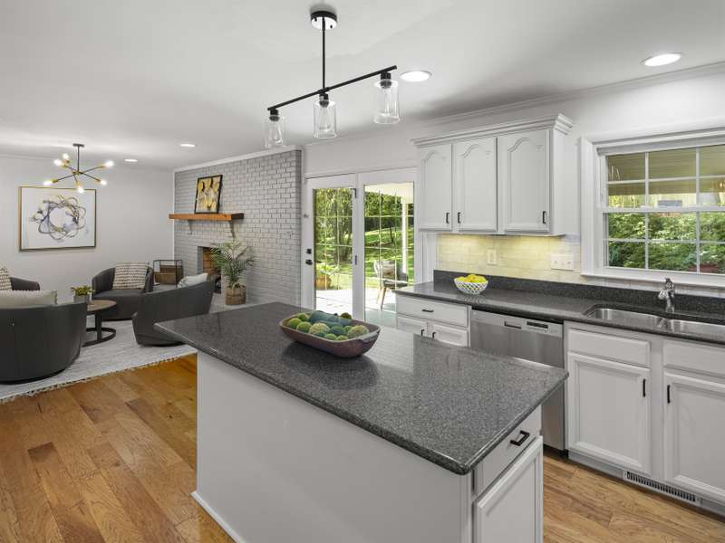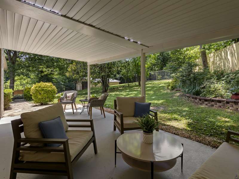 This exceptional property offers a fantastic blend of comfortable living and a versatile business/hobby space, all situated on a private, spacious lot in convenient south Asheville. The classic brick home boasts a newly constructed and finished 828 sq. ft. lower level living space, now offering two levels of refined living. An open-concept kitchen features a center island/breakfast bar, elegant granite countertops and ample cabinet/counter space. The kitchen adjoins the family room with a charming brick fireplace. The four bedrooms are conveniently located on the main level. The new lower level basement also includes a dedicated laundry area with a walk-in closet for extra storage. Additional highlights of this property include a Geothermal heat pump system, as well as walk-out access to a covered patio and a fully fenced backyard area. The 1,200 sq. ft. outbuilding is equipped with a mini-split HVAC, storage loft and restroom - the possibilities are endless.