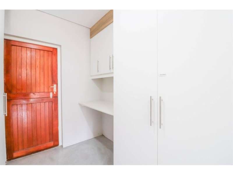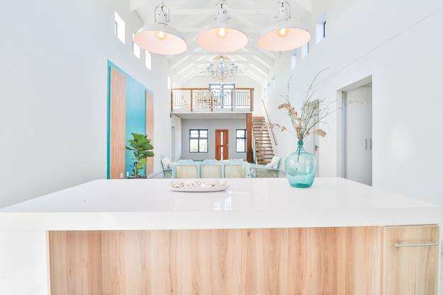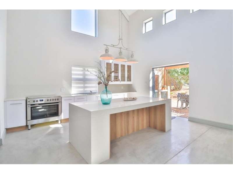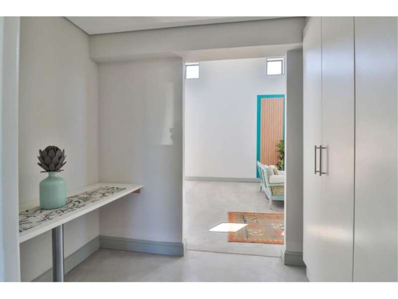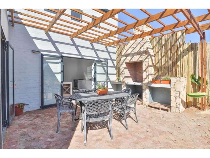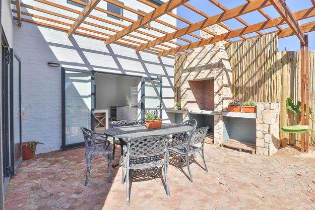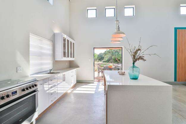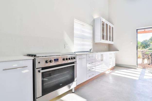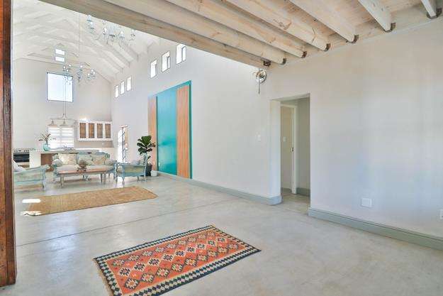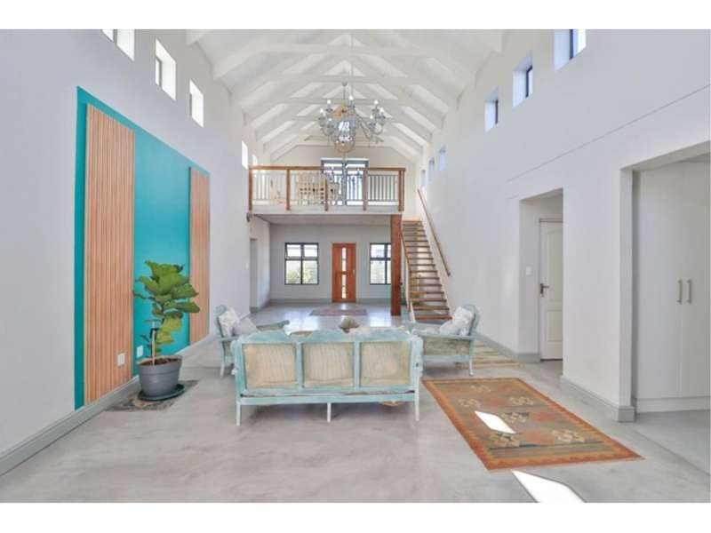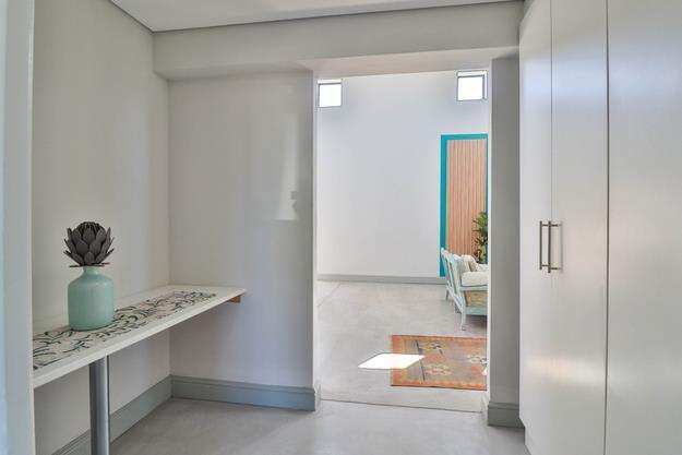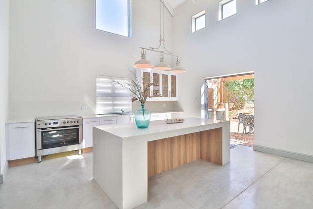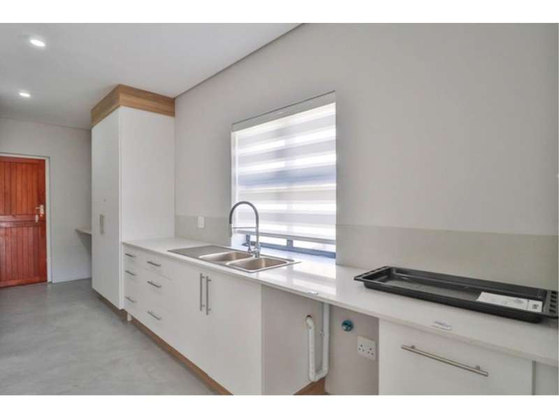 Newly constructed three-bedroom, three-bathroom home crafted by architects, boasting a spacious double-volume living and dining area. The kitchen seamlessly blends classic and contemporary design, featuring ample space for appliances, a convenient coffee station, pantry cupboard, separate scullery, and laundry area. A dedicated workspace with abundant storage is ideal for remote work. Outside, an inviting patio with a built-in braai offers the perfect setting for entertaining, complemented by a double garage featuring an automated aluminum door. Upstairs, a versatile mezzanine floor provides potential for an additional bedroom or children's space, while an outdoor balcony treats residents to picturesque ocean views. Each bedroom is equipped with generous built-in wardrobes, with ample storage solutions throughout the home, including a linen cupboard. Nestled in the heart of Stilbaai, the property enjoys a prime location bordering a lush green belt on two sides. To the north, a designated indigenous park area ensures preservation, while the home sits at the end of a horseshoe-shaped street (Klapperbos Crescent), offering unobstructed sea vistas from the loft and upper balcony.