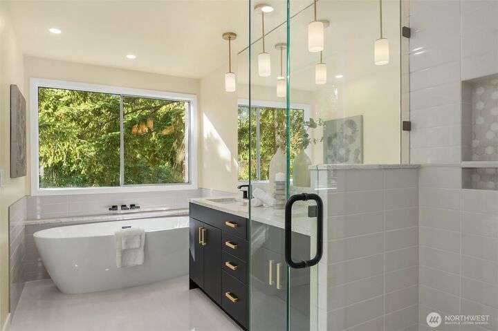 Full-scale sophistication & renovations. Enter to towering ceilings, giant picture windows & natural views. Fantastic location by the Cross Kirkland Corridor in a coveted Highlands cul-de-sac. Functional spaces w/soothing colors & dual staircases. Chef’s kitchen: custom cabinets, quartz counters & designer lighting. Center island flows to family rm open to entertainer’s deck w/corridor views. Sumptuous Primary w/new Spa bath, soaking tub, walk-in closet & private patio. Main floor office & 3/4 bath. All upper floor guest rooms w/en-suite. Nothing untouched: brand new carpets, updated Kitchen, baths & refinished hardwoods. Oversized 3 car garage & fenced yard w/space for boat storage. Peter Kirk Elem, close to D/T dining, boutiques & more.