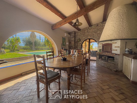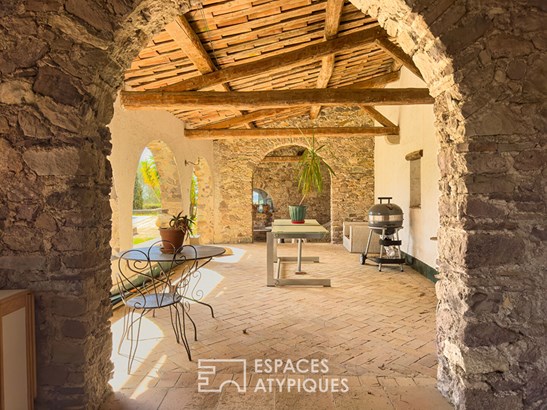 A gallery with stone arches leads to four independent studios, and upstairs, a charming two-room apartment offering privacy and comfort to your guests. The ground floor porch gives access to another bedroom with private bathroom, as well as a two-room loft apartment of approximately 120 m2. This apartment consists of a bright living room, an open kitchen, a comfortable bedroom and a modern bathroom.
