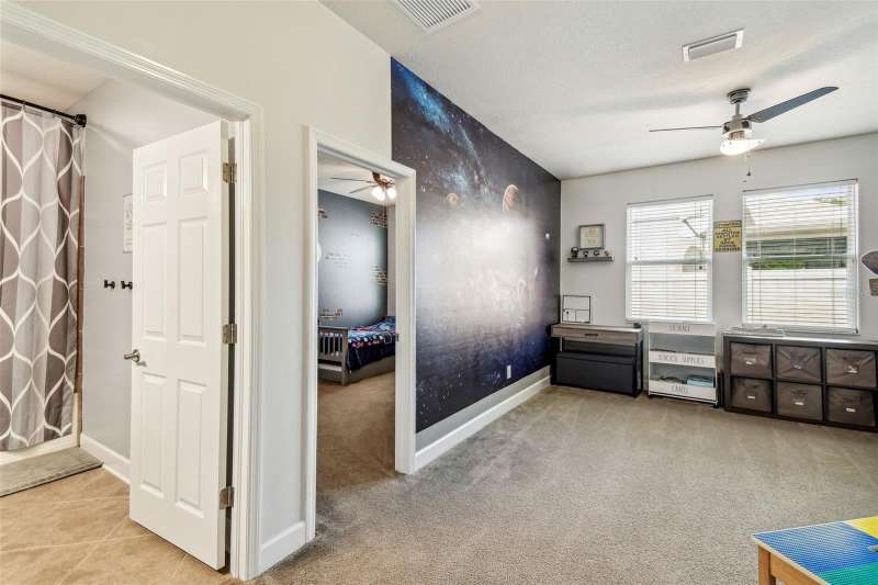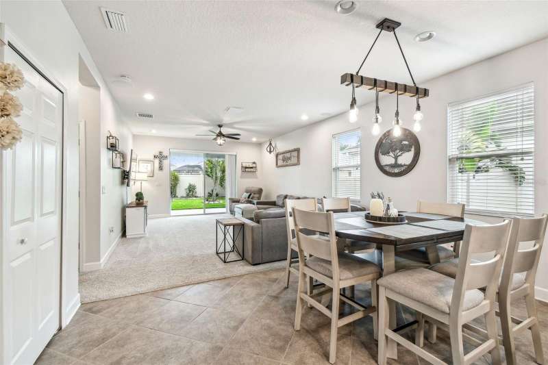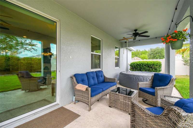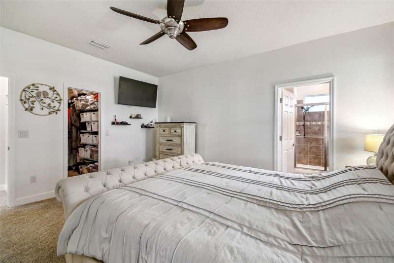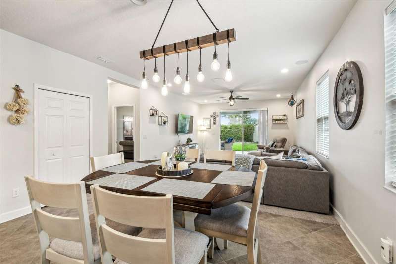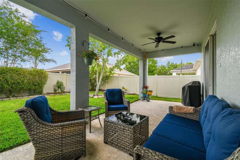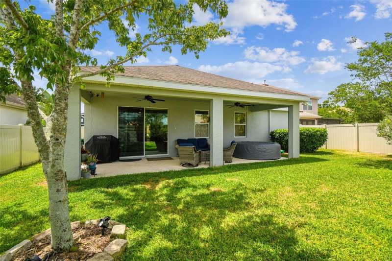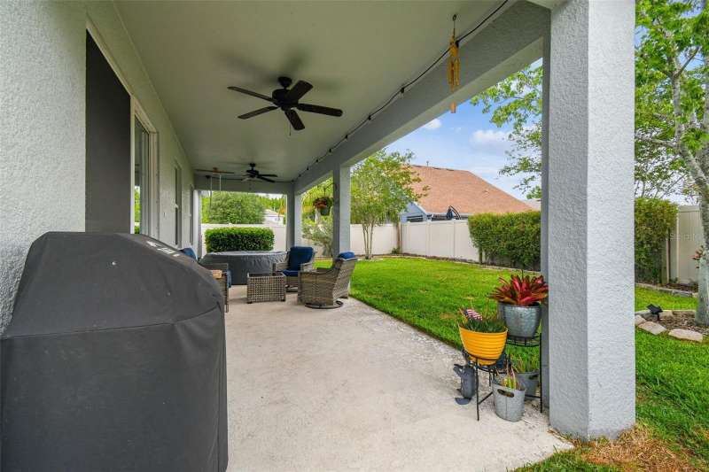 Your dream home awaits in award-winning Connerton; a master-planned community known for its resort-style living, nature preserves, and miles of scenic trails and elevated boardwalks. This move-in ready home offers 2,091 square feet of thoughtfully designed space, featuring 3 bedrooms, 2 full bathrooms, a den/office that can easily be converted into a 4th bedroom, a bonus/media room, and a 2-car garage. Step inside to an inviting open-concept layout perfect for both relaxing and entertaining. The heart of the home is the beautifully updated kitchen, featuring new stainless steel appliances, including a gas range, built-in microwave, dishwasher, and refrigerator. With 42” wood cabinets featuring custom pull-out drawers, abundant granite countertops, and a large prep island, the space is as functional as it is stylish—ideal for preparing meals and gathering with friends and family. The kitchen opens seamlessly to the dining area and spacious great room, creating a bright and connected living space. From the great room, enjoy views of the extended lanai and beautifully landscaped, fenced backyard, offering both privacy and the perfect setting for outdoor living. The split-bedroom floor plan ensures comfort and privacy, with the owner's suite featuring a walk-in closet, ceiling fan, and a private ensuite bath complete with a tiled walk-in shower, linen closet, and granite-topped vanity. The two additional bedrooms are generously sized with ceiling fans and carpeted flooring. The bonus room offers a flexible retreat, ideal for a media or game room. Additional upgrades include a new whole-home tankless water heater with self-descaling system, ensuring energy efficiency and long-term comfort. Living in Connerton means access to top-tier community amenities, including a 10,000 sq. ft. clubhouse, Fit & Flourish Fitness Center, resort-style pool with water slides and splash pad, adult pool, dog parks, sports courts, and an outdoor amphitheater. An additional clubhouse and pool are currently under construction, expanding the community’s offerings even further. The home is located less than a 5-minute walk to Connerton’s park, which features a playground, soccer fields, ping pong tables, and bags courts, making it perfect for active families. Commuters will love the upcoming entrance to the Veterans/Suncoast Expressway, providing quick access to Tampa, Clearwater, and St. Pete. Educational options are exceptional, with Pinecrest Academy recently built in the neighborhood, and Dayspring Academy and Angeline Academy just minutes away.