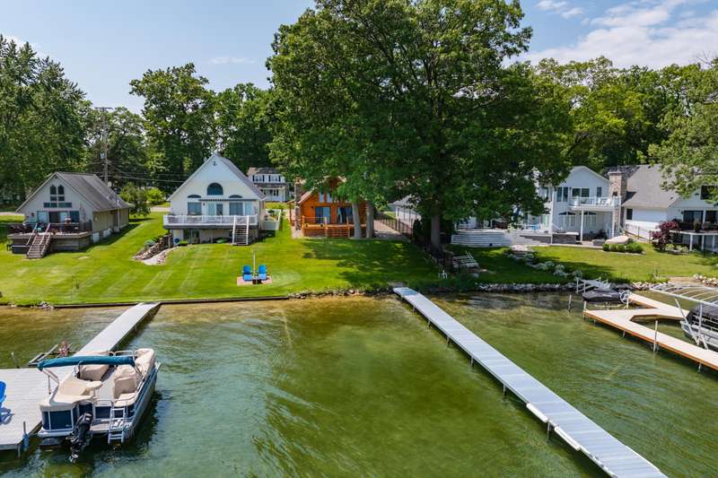 OPEN HOUSE SUNDAY 12-2pm Affordable home on all sports Austin Lake. 44 feet of water frontage with large dock. Remodeled year round home or great summer cottage!. Kitchen features maple cabinets, granite counter tops and stainless appliances. Center Island w/ bar stools. Vaulted great room with beautiful stone hearth real wood burning fireplace. Slider out to expansive deck and panoramic views of lake. 2 bedrooms on main and spacious full bath. Upstairs primary suite w/ large closet and adjacent full bath. Basement has laundry area and plenty of room for storage or to finish. 1 car detached garage. Portage schools. Move in ready. home currently non homestead. New roof & furnace 2025. Central air but owner leaving window AC upstairs to make colder in the room. Priced to sell, seller would like to sell AS IS! Major components are replaced per owner