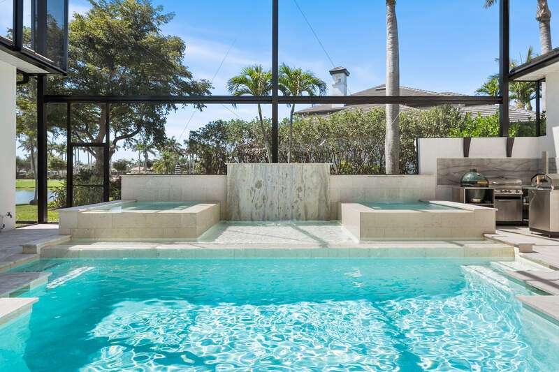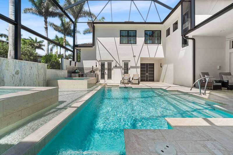 Exclusive Opportunity in Gulf Harbour | Seaside Estates Courtyard Home with Sport Membership Included! Limited-Time Offer: Seller will purchase a Sport Membership ($20K value) for the buyer! Act now before membership pricing increases. Welcome to luxury Florida living in this custom-built courtyard estate located in the prestigious Seaside Estates of Gulf Harbour Yacht & Country Club. Originally designed as the Toll Brothers model home, this 5-bedroom, 4.5-bath residence with a 3-car garage is perfectly positioned on one of the largest and most desirable lakefront lots-offering panoramic views of the tranquil water and the 18th fairway. Resort-Style Courtyard Oasis Step through double wood entry doors into a private courtyard retreat, complete with a saltwater pool, hot tub, and rare 5-ft deep hot/cold plunge tank. The pool area has been recently enhanced with: Three cascading waterfalls over a marble feature wall New LED lighting & tile (2024) Wi-Fi-controlled pool equipment Brand-new Fabritech cage (2024) Limestone tile pool deck Elegant Interiors The open-concept layout is designed for comfort and entertaining, showcasing 12-ft ceilings, Italian tile flooring, crown molding, and two spacious living areas. The chef's kitchen offers granite counters, stainless steel appliances, and a passthrough window to the lanai-perfect for gatherings. Private Retreats Primary suite: seating area, lanai access, dual walk-in closets, spa-inspired bath with soaking tub & walk-in shower. Mother-in-law casita: private entrance & full bath-ideal for guests or multigenerational living. Upstairs: 3 additional bedrooms, including one ensuite + a Jack & Jill bath for added comfort. Outdoor Entertaining Host in style with the fully equipped outdoor kitchen featuring: stainless steel sink, refrigerator, gas grill, Green Egg smoker, and an Ooni pizza oven. Recent Updates (2024 & recent years) New driveway, fresh interior/exterior paint New soffits, eavestroughs, and downspouts Hardened stucco trim for durability New upstairs A/C (2024); main A/C (3 yrs old) Upgraded LED recessed lighting throughout New fans (casita, lanai, family room) New exterior lighting & entry doors Flo by Moen water shut-off system New dishwasher + 2 wine refrigerators Bonus Opportunities Seller's Golf Membership & 50' boat slip in Gulf Harbour Marina available for separate purchase Transferable flood insurance for added peace of mind This one-of-a-kind home combines sophistication, comfort, and unparalleled waterfront lifestyle-all within the gates of Gulf Harbour Yacht & Country Club. Don't miss the walk-through video for the full experience!