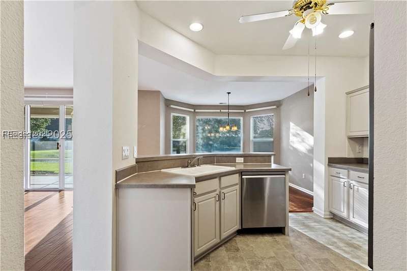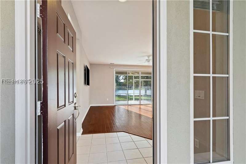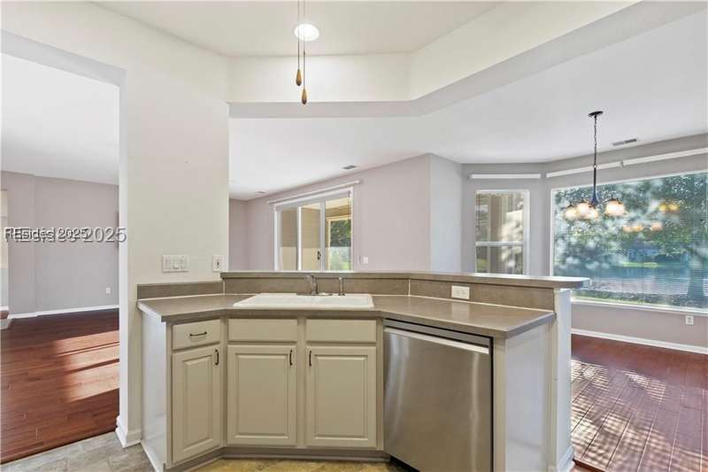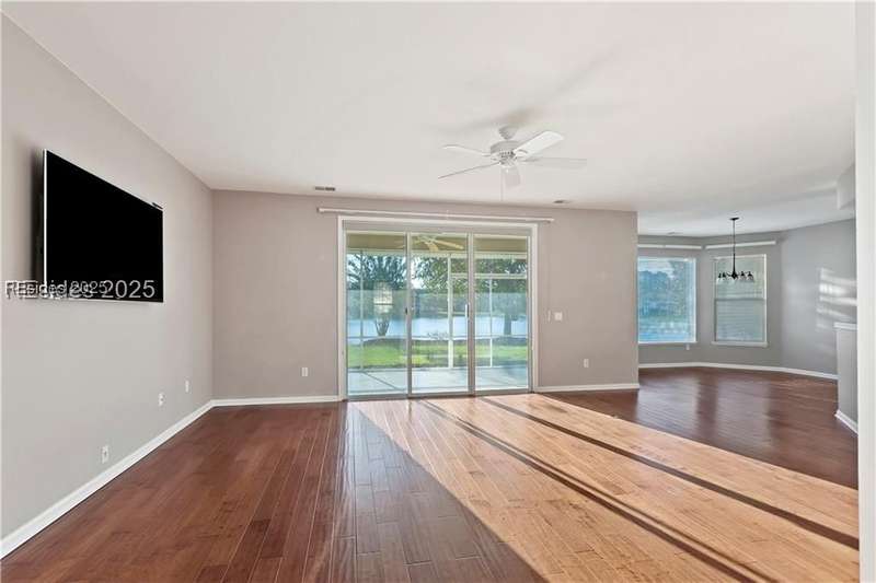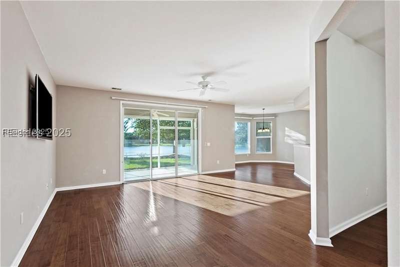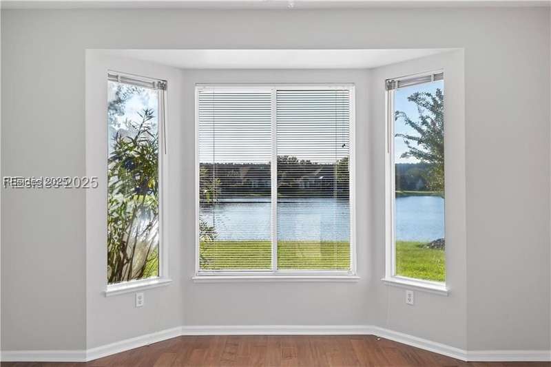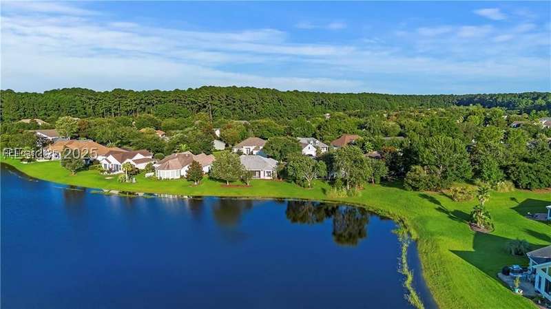 Impeccable Hamilton/Jefferson home located on a quiet cul-de-sac overlooking a large, beautiful lagoon. This 2 bedroom, 2 bath home with den features newer wood floors throughout most of the home. The property boasts newer SS appliances, fresh interior paint, 3M tint on most windows, gutters, and a screened lanai. Additionally, there s a 2-car garage with Tesla charging outlet and pull-down stairs to the attic. Community amenities include boat storage, bocce courts, a pool, deep water access, a dog park, fitness center, gardens, golf privileges, leisure trails, pickleball court, playground, restaurant, security gate/guard, and tennis courts.