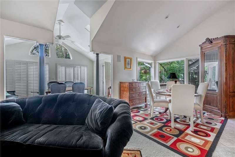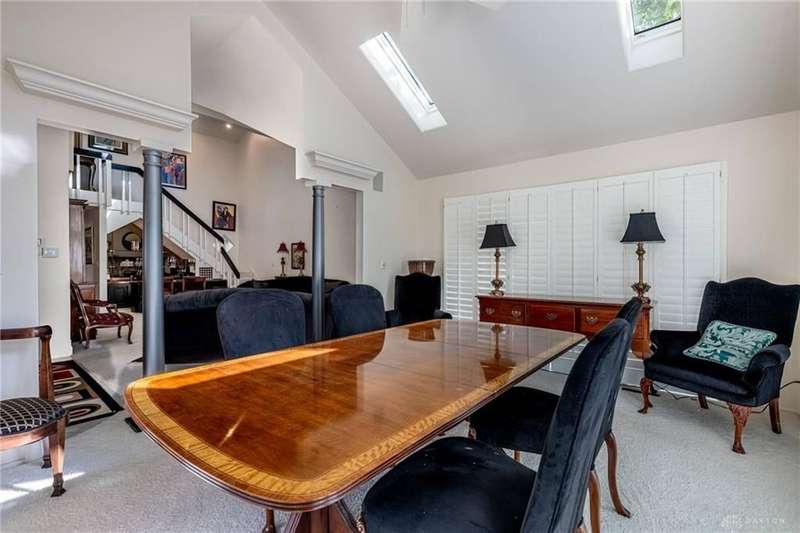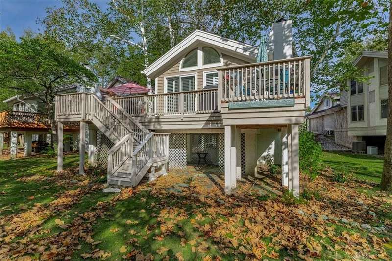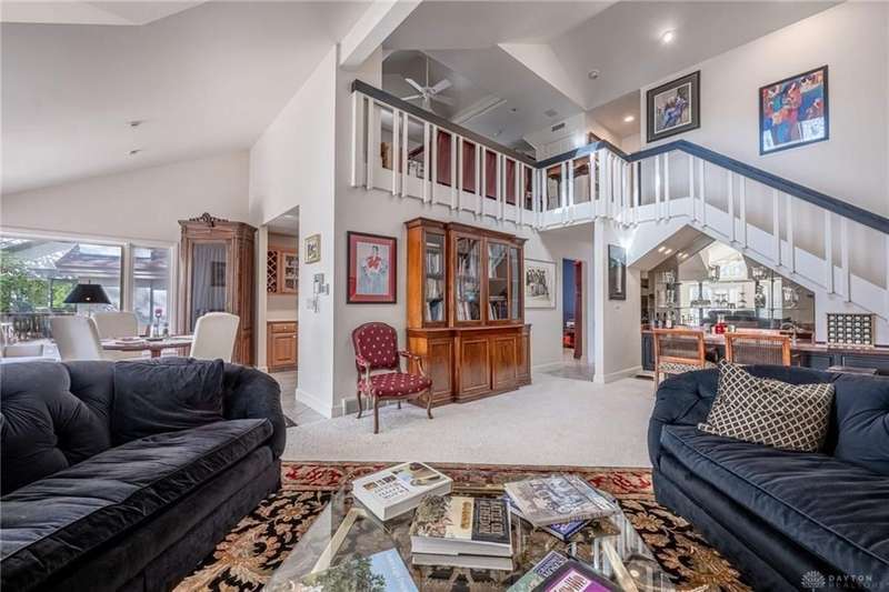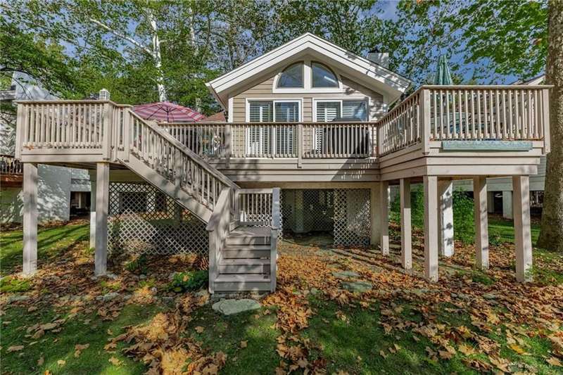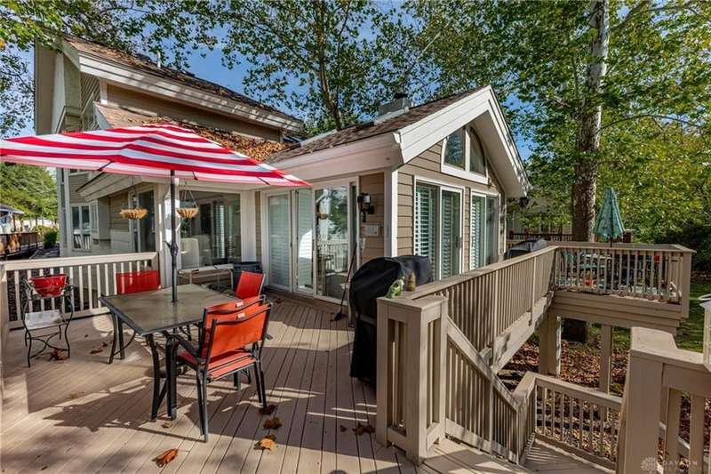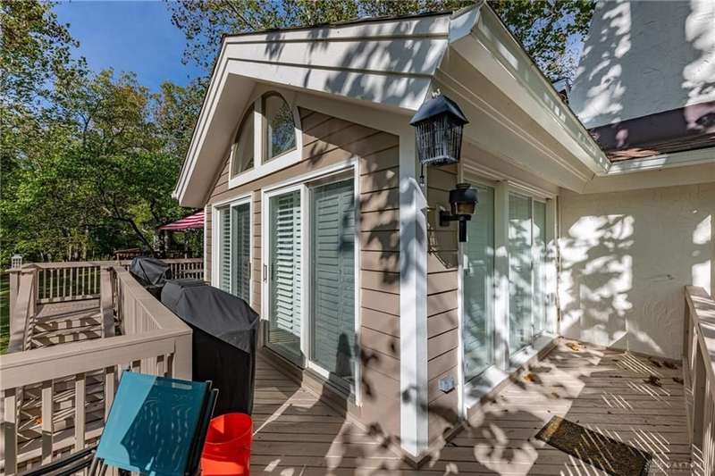 Nestled above Holes Creek in a quiet, wooded setting, this architecturally distinctive single family home offers over 3,000 sq ft of beautifully upgraded living space. Features soaring ceilings, oversized windows, and a seamless indoor-outdoor flow, perfect for both everyday living and entertaining. The open-concept main level includes a spacious great room with cathedral ceilings, a formal dining area, kitchen with custom cabinetry and solid-surface counters. The wraparound deck feels like a private treehouse, offering stunning views. The first-floor primary suite includes a walk-in closet and luxurious bath. Upstairs, you'll find a second en suite bedroom plus a third bonus room with a private staircase ideal for guests or a home office. Additional features: 2-car attached garage, HOA that covers lawn mowing, leaf removal, snow removal, salt, landscape maintenance, for a low monthly fee. Located in Washington Township near shopping, dining, and parks, this rare find offers natural beauty with modern comfort. Recent improvements: new roof with gutters, downspouts, and leaf guards in 2023, rebuilt deck 2023.