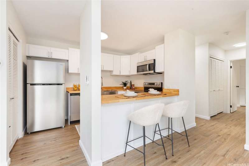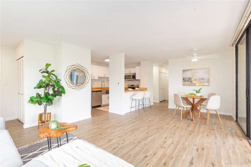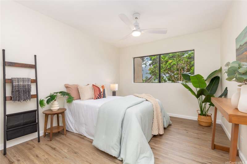Welcome Home to Poha Kea Point! Enjoy the best of Windward Oahu living in this renovated, single-level "Birchwood" model townhome with breathtaking panoramic views of the Koolau Mountains and Kaneohe Bay. This end-unit is filled with natural light and cool breezes, and opens to a spacious private lanai-perfect for relaxing or entertaining. Featuring a rare garage, this home offers the comfort and convenience of single-level living in one of the most desirable communities on the Windward side. Higtlights Include: Updated interior with modern finishes, custom butcher block countertop in the kitchen. Expansive views from the main living area, large, private lanai for indoor-outdoor living, Garage + ample guest parking. Community Amenities: Three pools, hot tub, BBQ areas & patios, Clubhouses, tennis courts, and jogging paths. Located near shopping, dining, schools, and Marine Corps Base Hawaii--this is island living at its finest! One of more photos have been enhanced