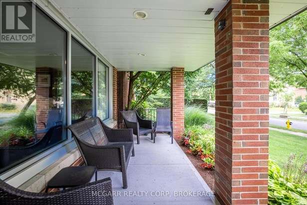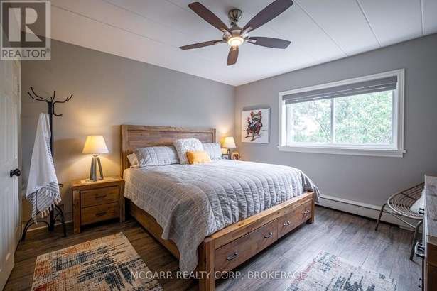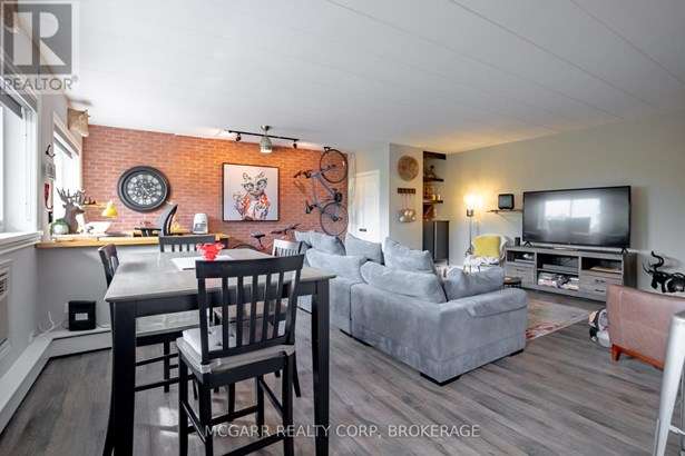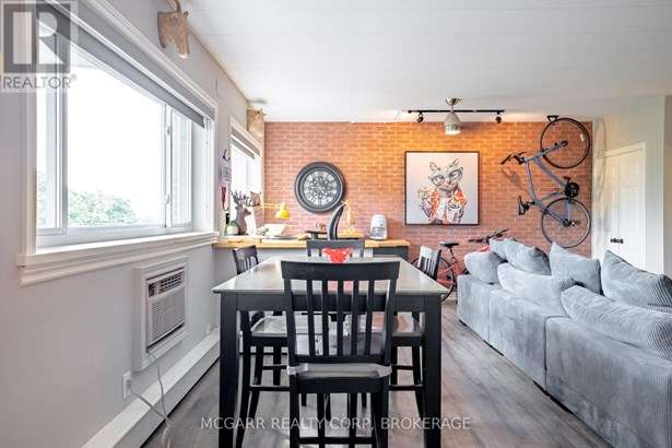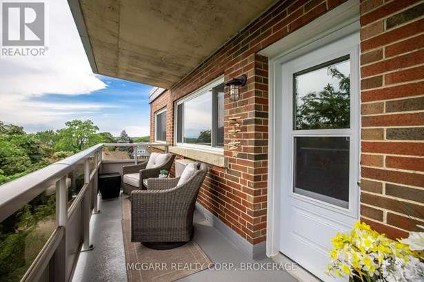 Uptown. Upbeat and uplifting. Welcome to the classic Yates District with immense heritage + desirable streets. Montebello Arms is a timeless building with only 20 suites all with their own corner. Relax in the covered front patio and enjoy chats with passing neighbours. Curl up with a book in the quaint lobby. There is a separate laundry room with washer, dryer and sink between every two floors. Penthouse 503 is in a coveted location at the back North West corner. Upon entering you will smile and feel the good vibes that this renovated suite exudes. Open + spacious. The 21x19 great room is full of natural light, has one brick wall and a corner bar set up. A work area has a large window viewing tree tops. The dining area is open. Have fun in the kitchen/dinette area with lots of cabinetry. 4 appliances, subway tile backsplash + a really cool sink. Both bedrooms are spacious, have good closet space, ceiling fans + large windows. The 4pc bath has a tub/shower with glass doors. Now enjoy the 5x20 treetop balcony with some sunset views, walk to major entertainment venues, the farmers market, a variety of restaurants + shops.