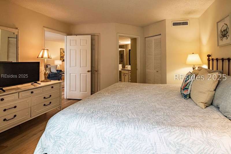Relaxing & beautifully maintained island retreat at desirable Ocean Walk Villas. Walk across the street to enjoy the beach. Walking distance to shopping, restaurants at Coligny Plaza & entertainment at Celebration Park. Two ensuite bedrooms with a lock out, two private balconies, 2 pools, walking trails, tennis & pickle ball courts. Great family vacation home, primary or investment property. Short term rentals permitted/Pet friendly for owners only. Investment opportunities $32/40K year Rental Projection. This property can be rented as two separate short-term one-bedroom property or rent as a 2-bedroom unit. New LVP Flooring, Updated baths and new appliances recently added.
