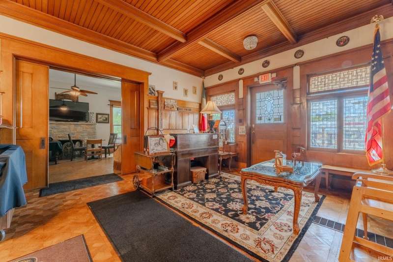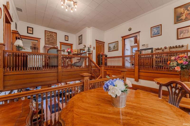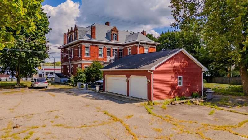 STUNNING! Step into timeless landmark Marion mansion, where Old World charm meets modern updates. From the rich natural woodwork, pocket doors, and intricate glass details to the impressive foyer and grand staircase, every inch of this home tells a story of craftsmanship and grandeur. Enjoy multiple gathering spaces including a formal parlor, a formal dining room with built-in hutch, and a spacious main living room. The fully updated kitchen is bright, cheerful, and comes complete with appliances and gorgeous granite countertops. This residence offers 6 spacious suite-style bedrooms, 2 full baths, and 2 half baths. The finished basement is perfect for entertaining, featuring a 37’ bar and an expansive 42x34 recreation area with exterior access. The unfinished third level provides endless possibilities—let your imagination design the perfect space! Outside, the property sits on 1.26 acres, secured behind elegant wrought-iron gates, and includes a newer-built 3-car detached garage. Recent upgrades add peace of mind with a brand-new roof (2021), new gas furnace, vinyl replacement windows, and a new exterior deck. This one-of-a-kind estate is a rare opportunity—original with modern comforts, right in the heart of town!